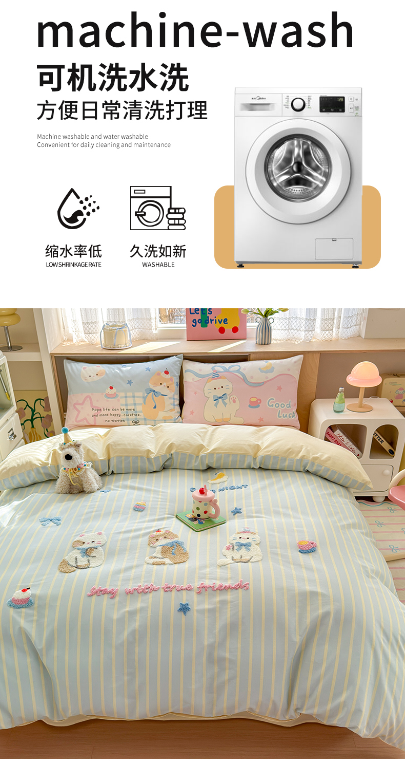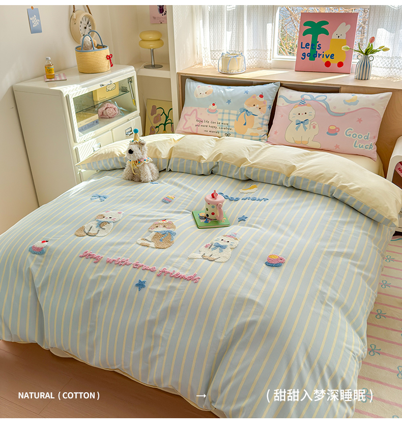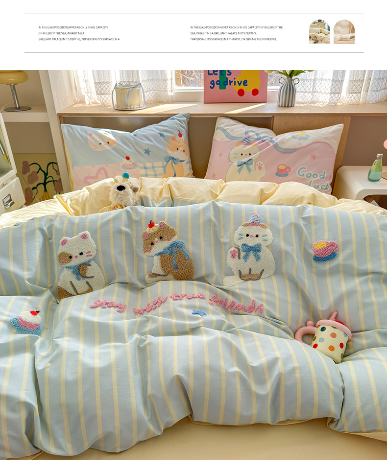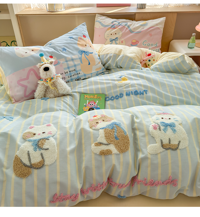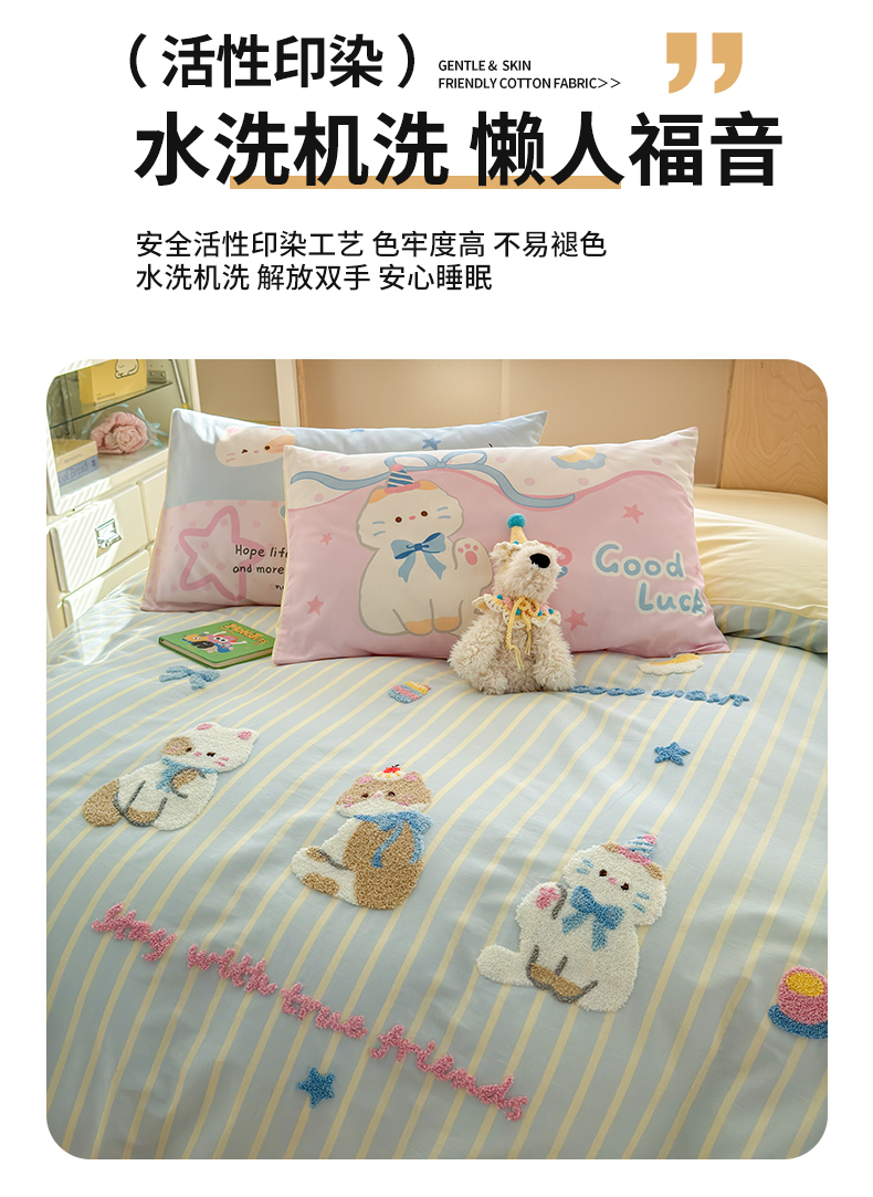 (总)优彩 2025新款40支全棉水洗棉提花刺绣四件套,开心熊猫,小红帽,小兔音乐会,幸运小狗