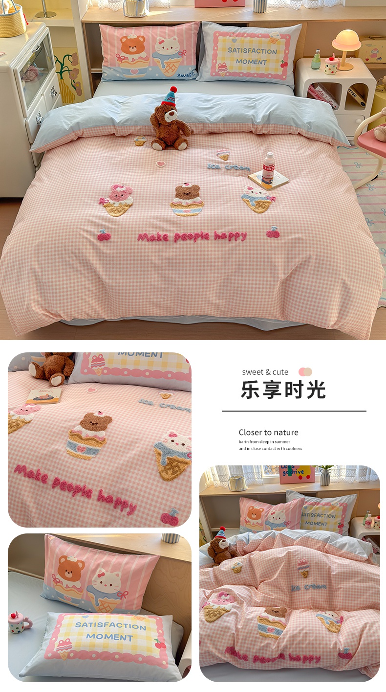 (总)优彩 2025新款数码印花贴布绣全棉四件套,春田小熊,温暖小窝,游乐园