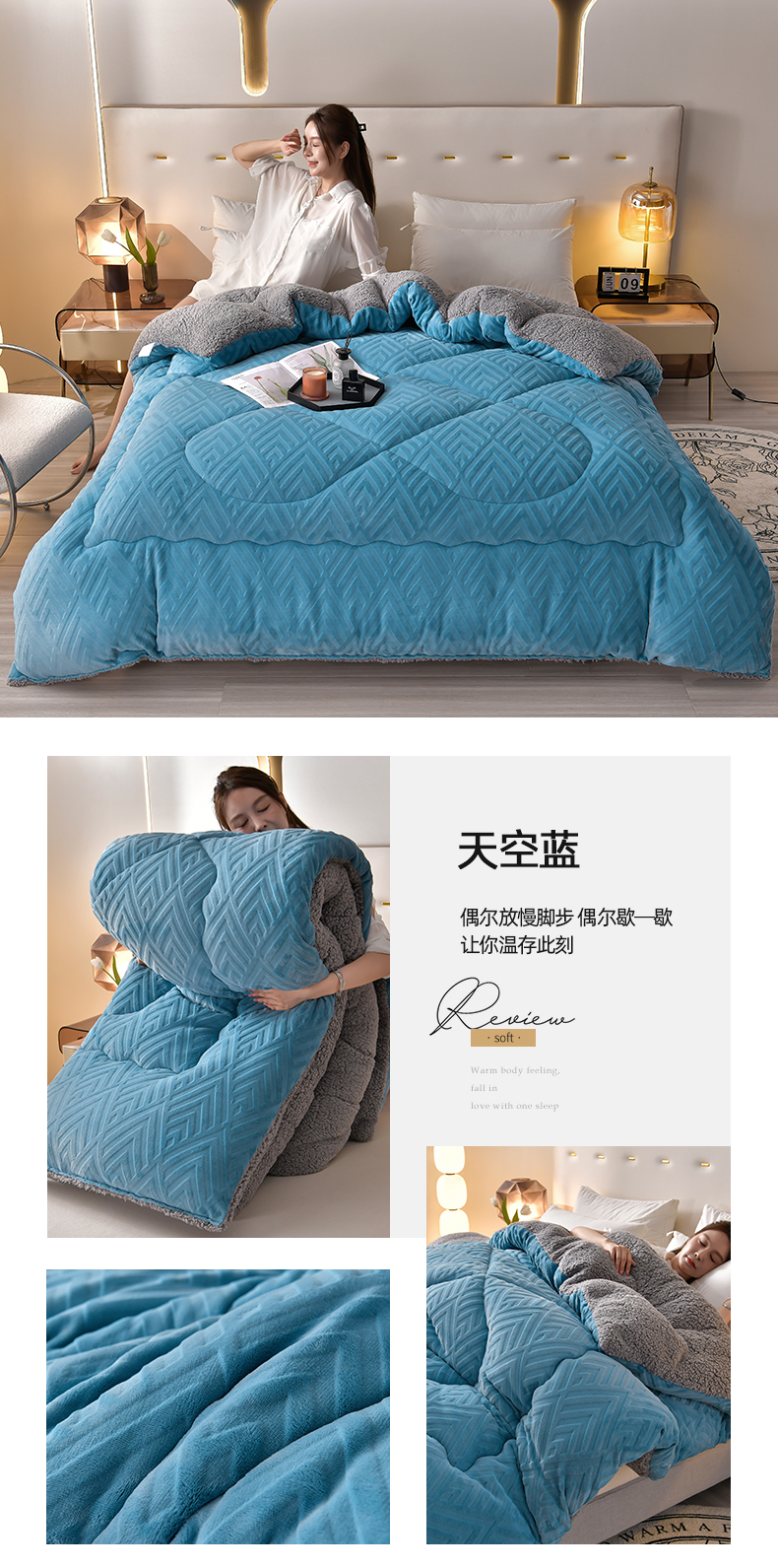 • 91家纺网 家纺一手货源 找家纺 (买家秀 爆款不断货)A类母婴级羊羔绒被子被芯牛奶绒被子被芯春秋被秋冬被羊羔绒冬被被芯纯色牛奶绒冬被 条纹-天空蓝