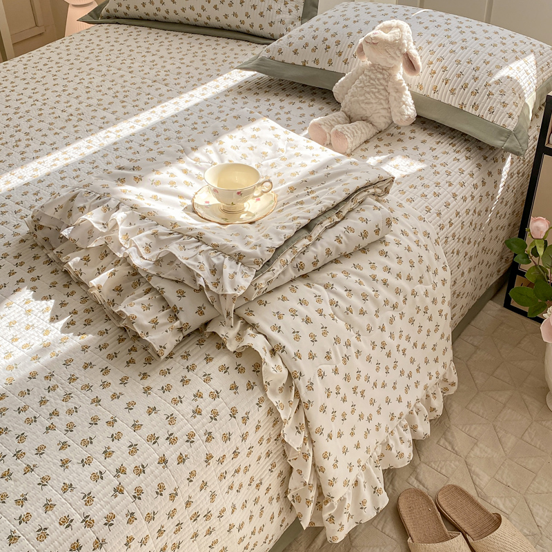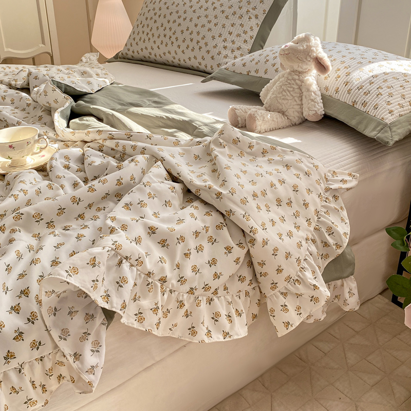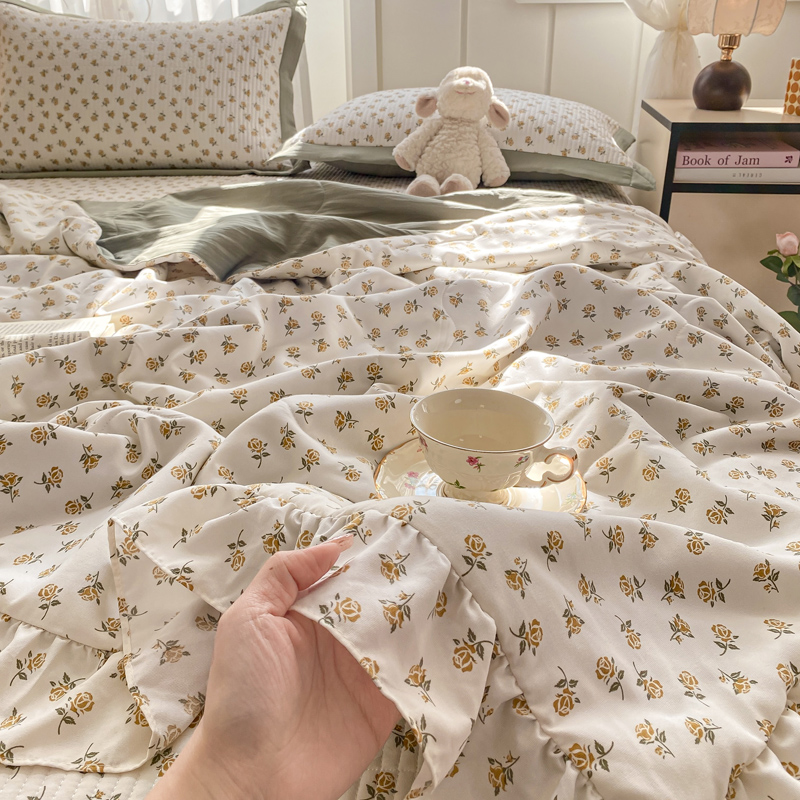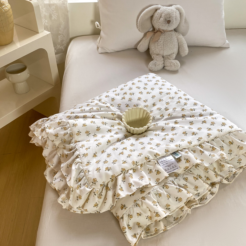 享受云端的柔软,是霎那间的心动~ 面料超软糯、、绗缝设计不易跑棉,贴身柔软又舒适,告别床单的褶皱与烦恼,法式小碎花。享受视觉的美感。沉浸式的入睡,仿佛进了森林氧吧。采用整张超细中空纤维棉 久用不板结 无甲醛,无芳香胺。婴幼儿可用
