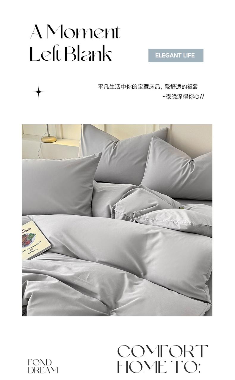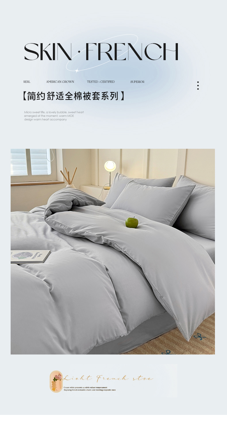 商品名称:佰亿莱 2025新款简约舒适全棉单品系列单被套 浅灰色