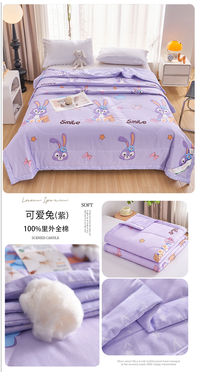 商品名称:羽梦家纺2025新款新疆棉花全棉夏凉被 可爱兔 紫