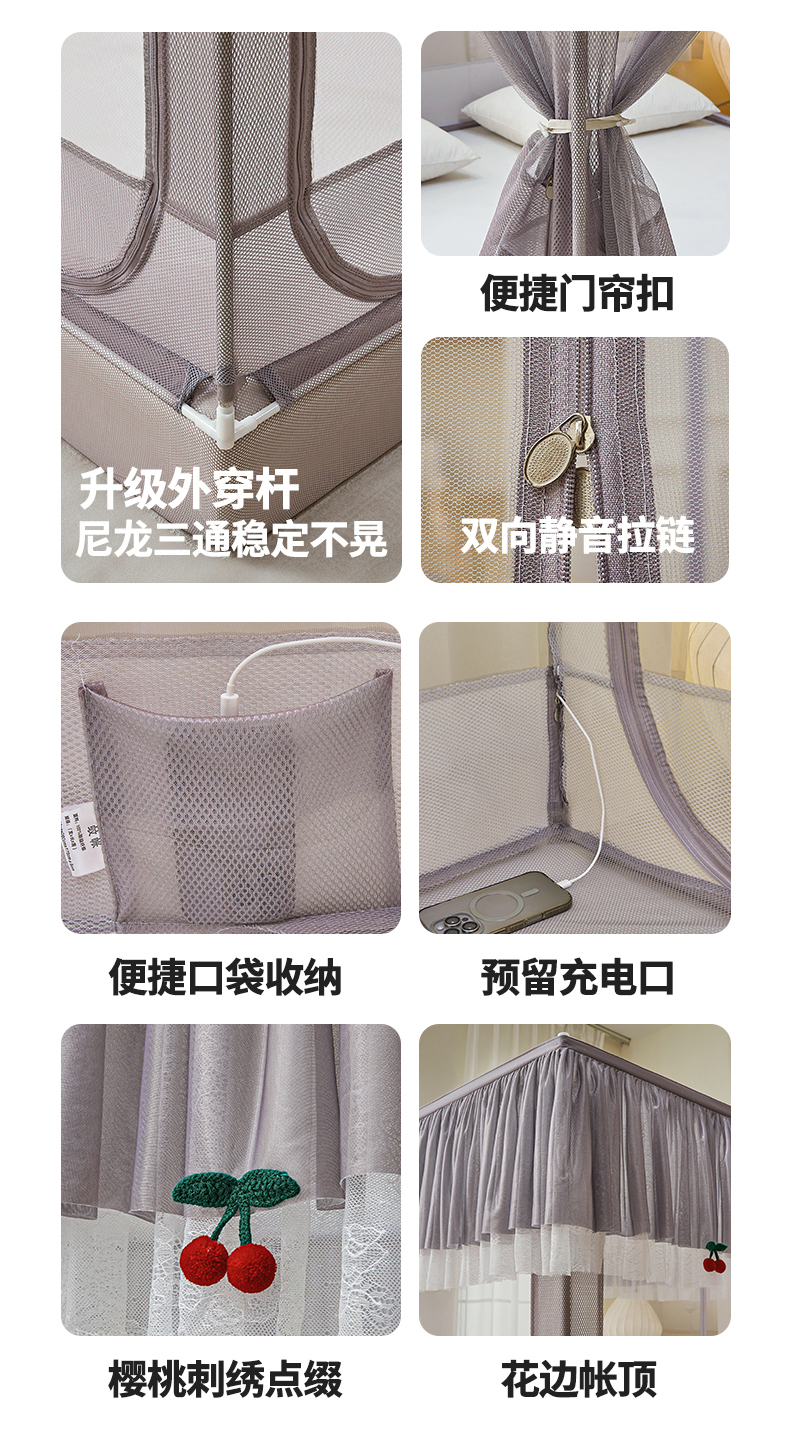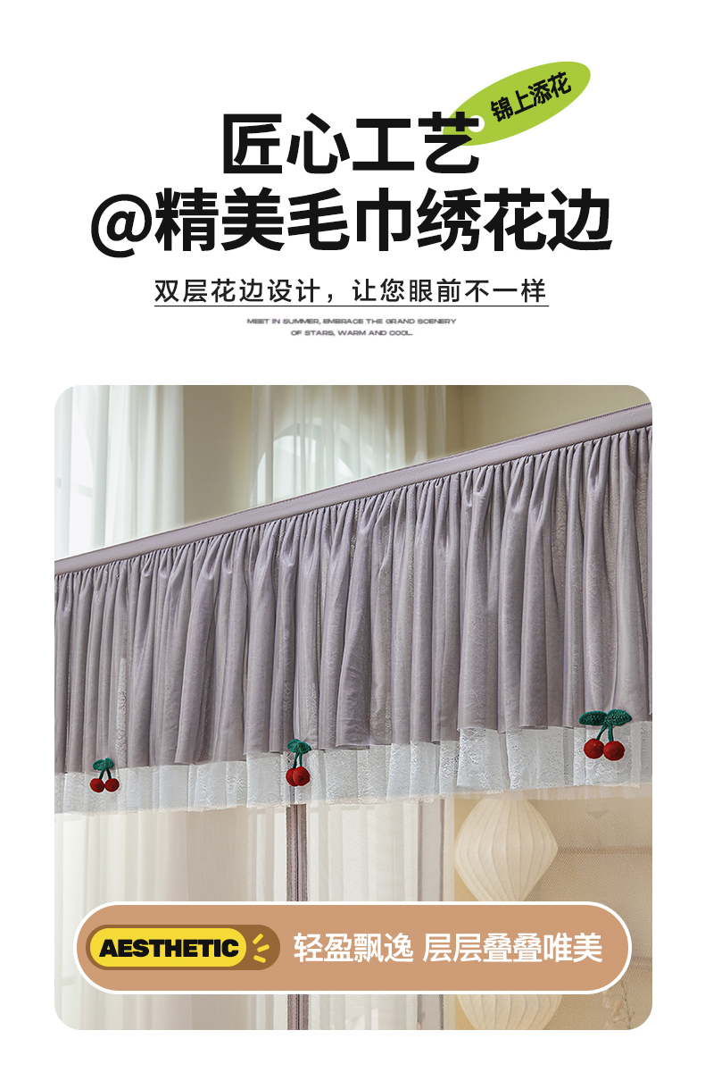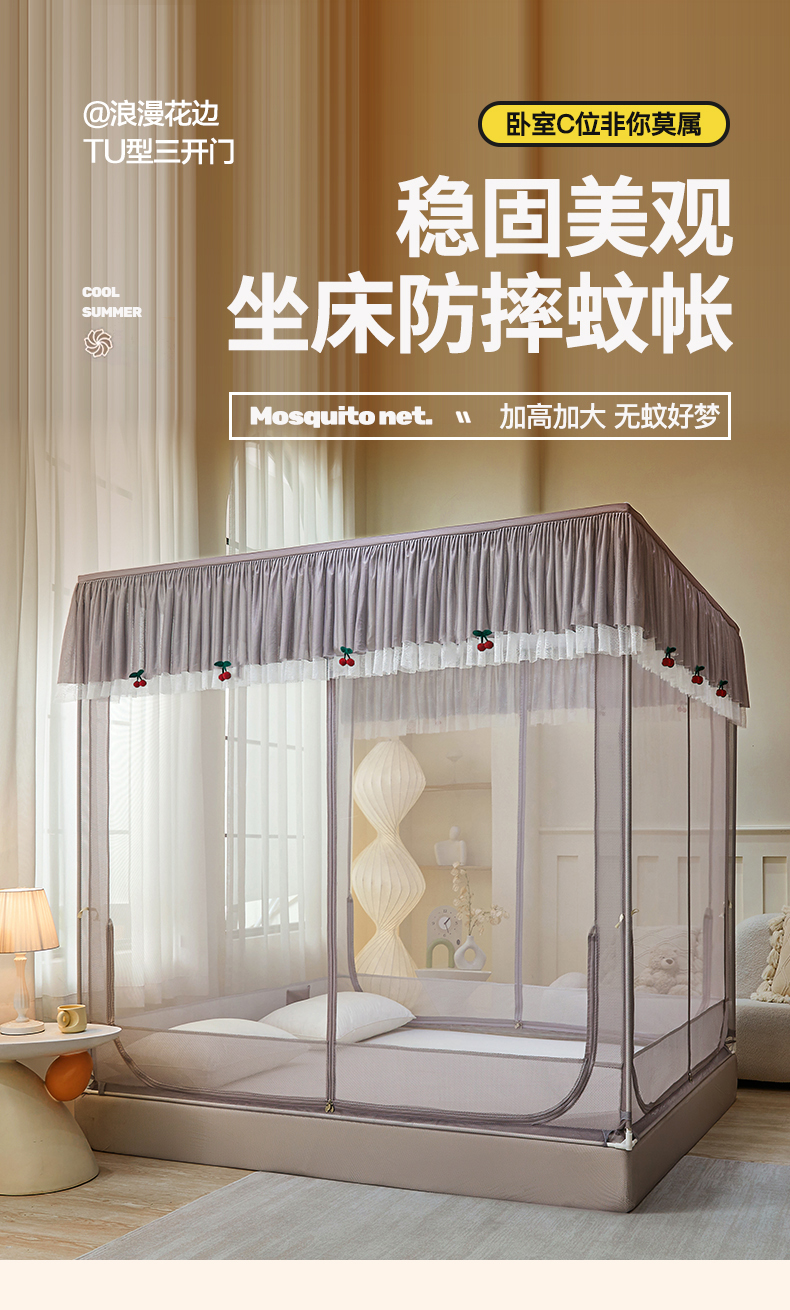 当前位置: 91家纺网 > 商品网购 > 床上用品 > 蚊帐 > 坐床式蚊帐 > 青竹苑2025新款花边款床笠底防摔坐床蚊帐-樱桃 樱桃-棕咖