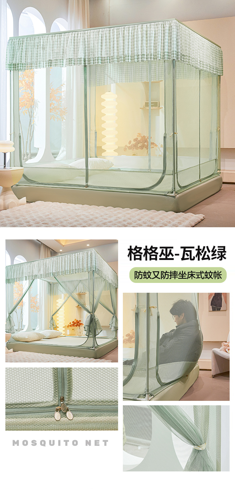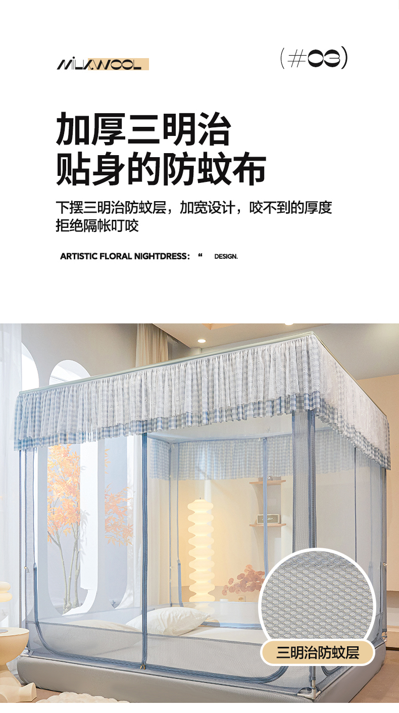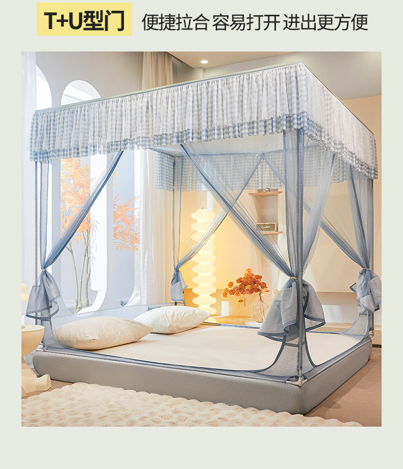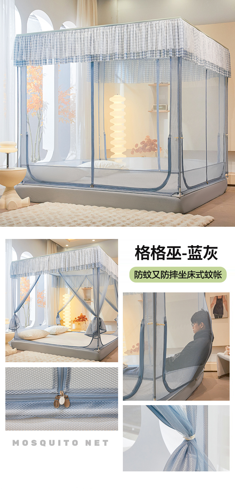 当前位置: 91家纺网 > 商品网购 > 床上用品 > 蚊帐 > 坐床式蚊帐 > 青竹苑2025新款花边款床笠底防摔坐床蚊帐-格格巫 格格巫-蓝灰