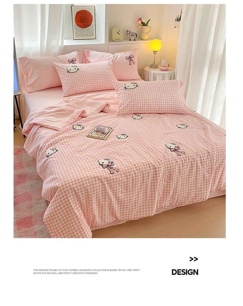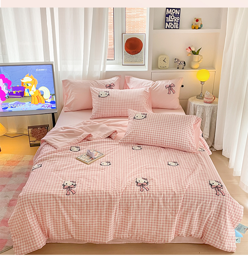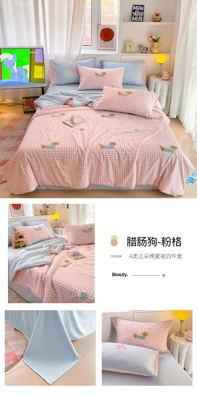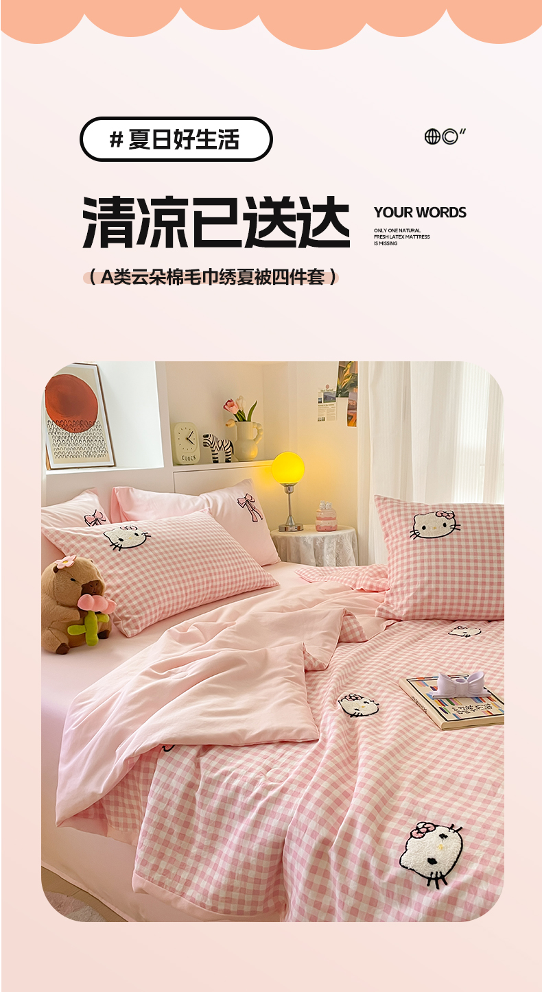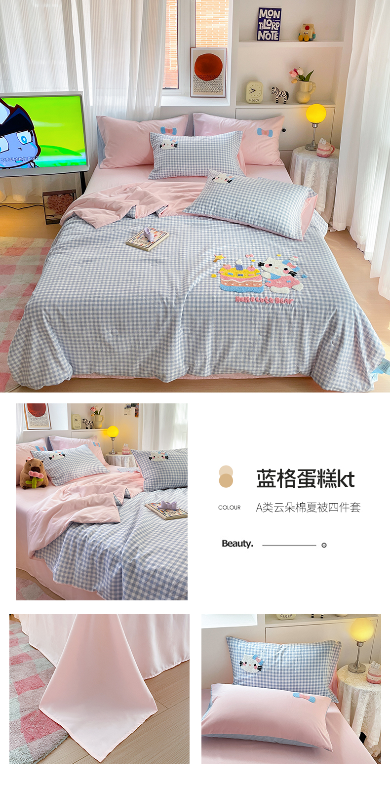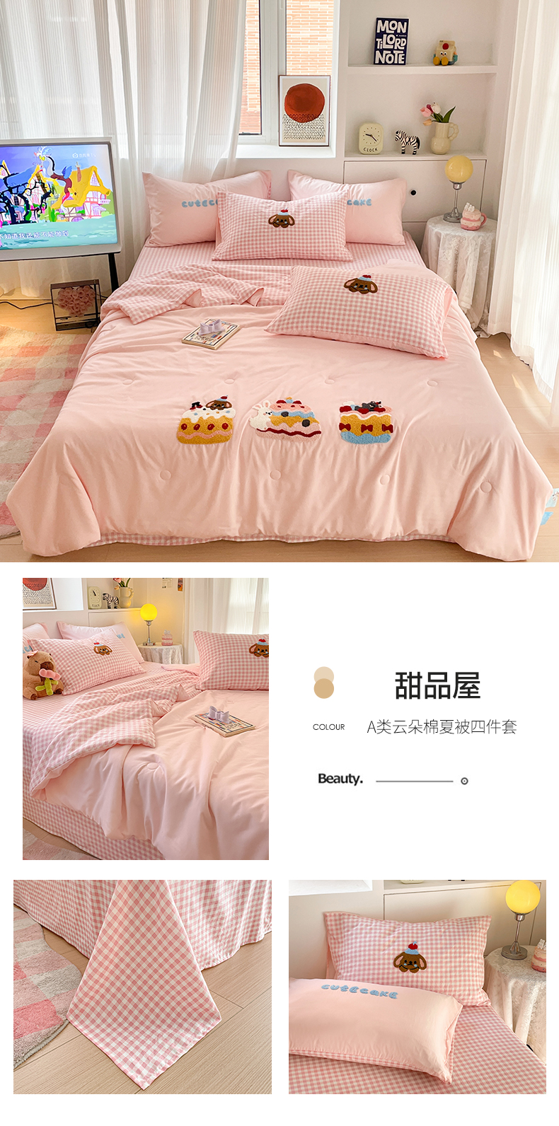 当前位置: 91家纺网 > 商品网购 > 床品套件 > 四件套 > 毛巾绣四件套 > 宇航家纺 2025新款云朵棉卡通毛巾绣夏被单品四件套 XB蛋糕猫-粉格