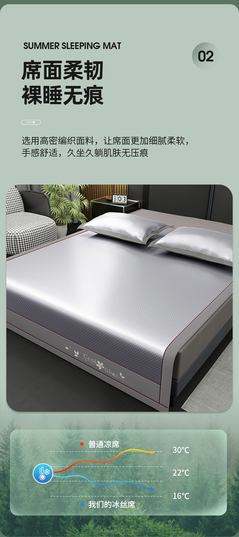 2023新款夏日冰点-冰藤双面席凉席藤席竹席冰丝席乳胶席,咖色,蓝色,绿色,香槟
