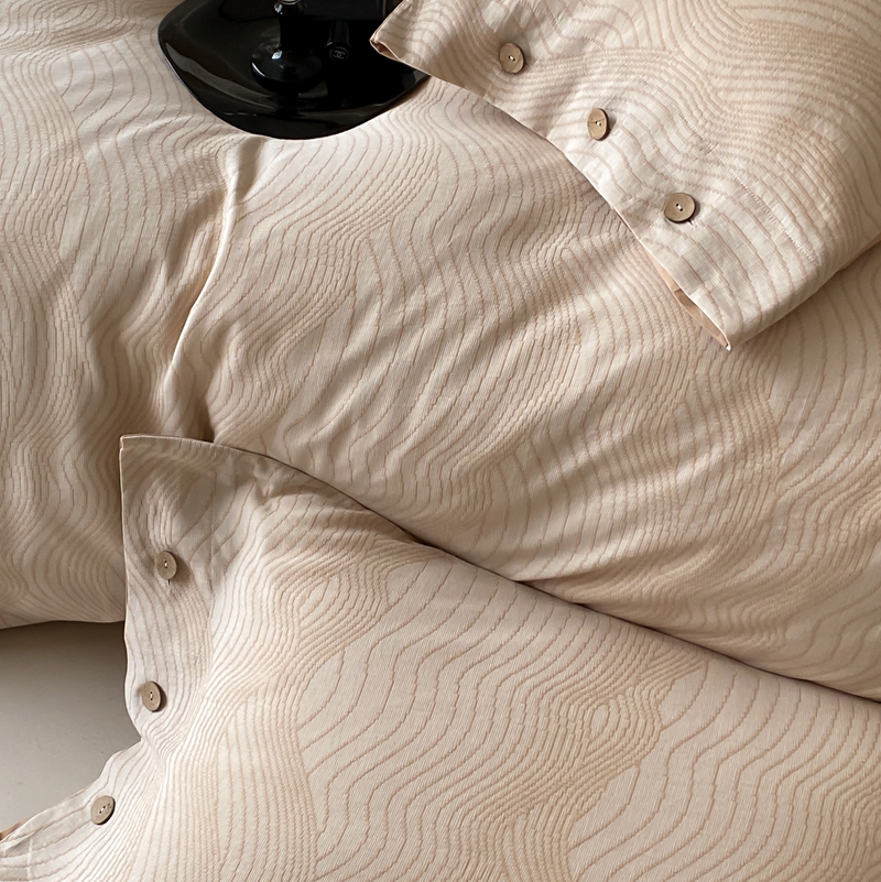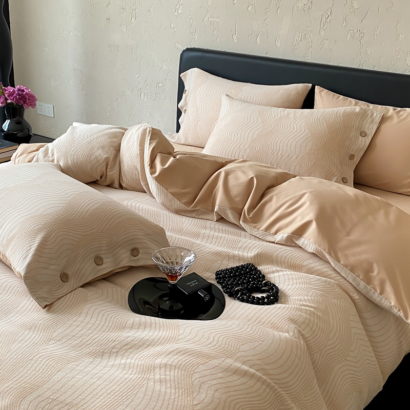 旷野 2025新款全棉色织提花四件套 听潮-奶咖