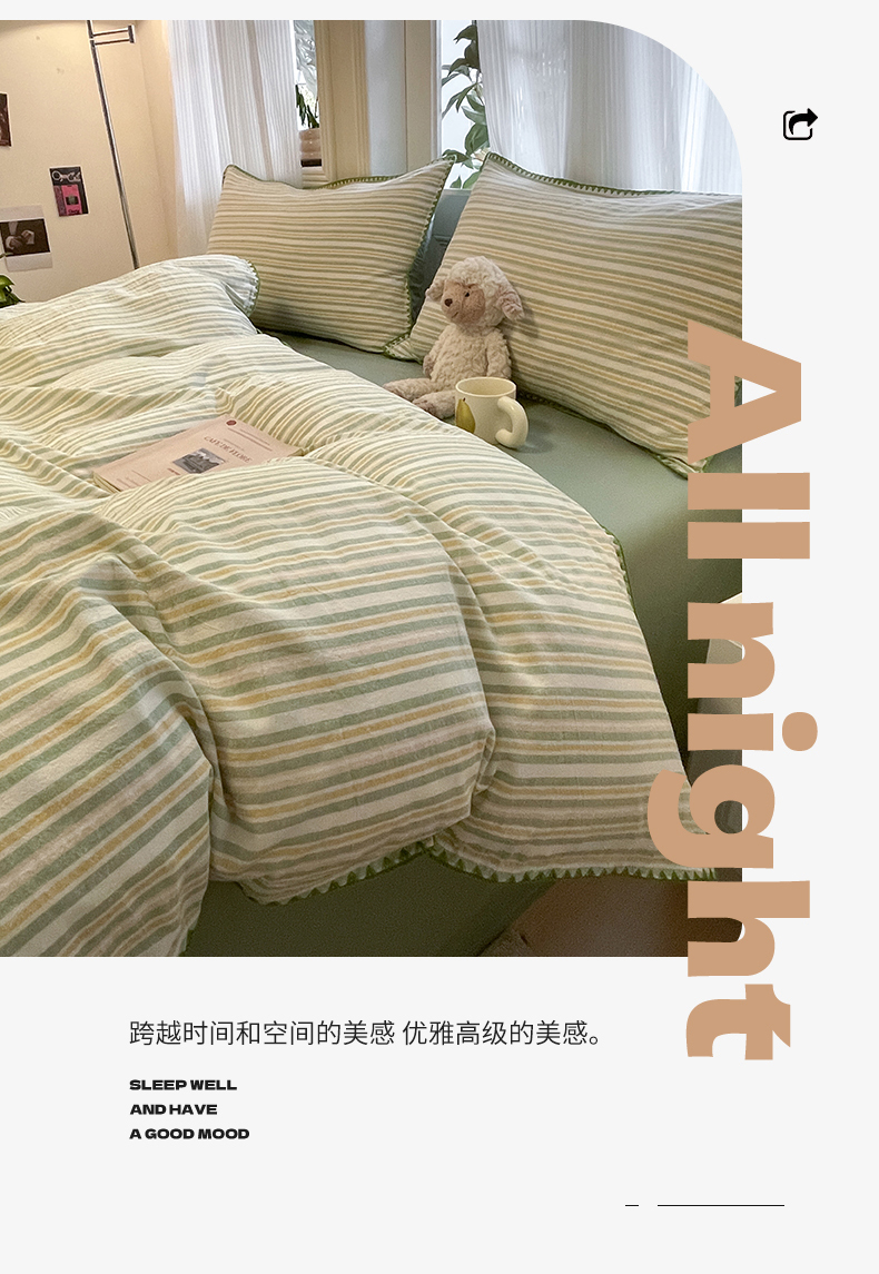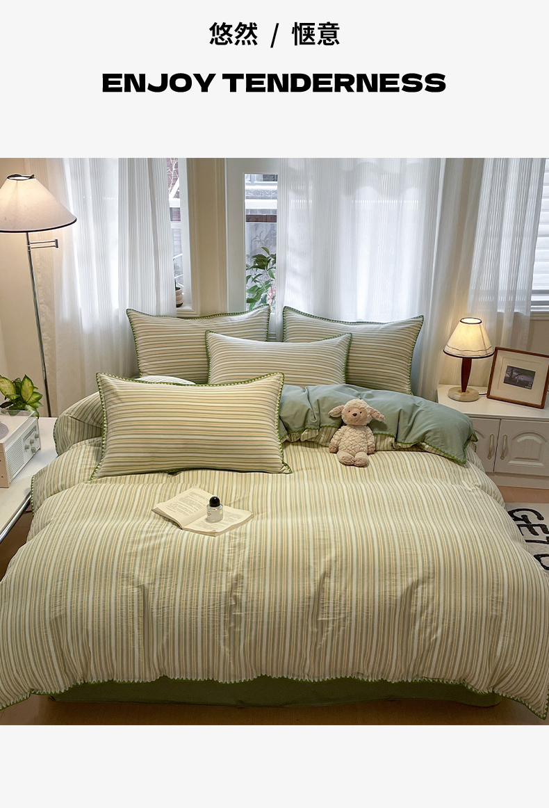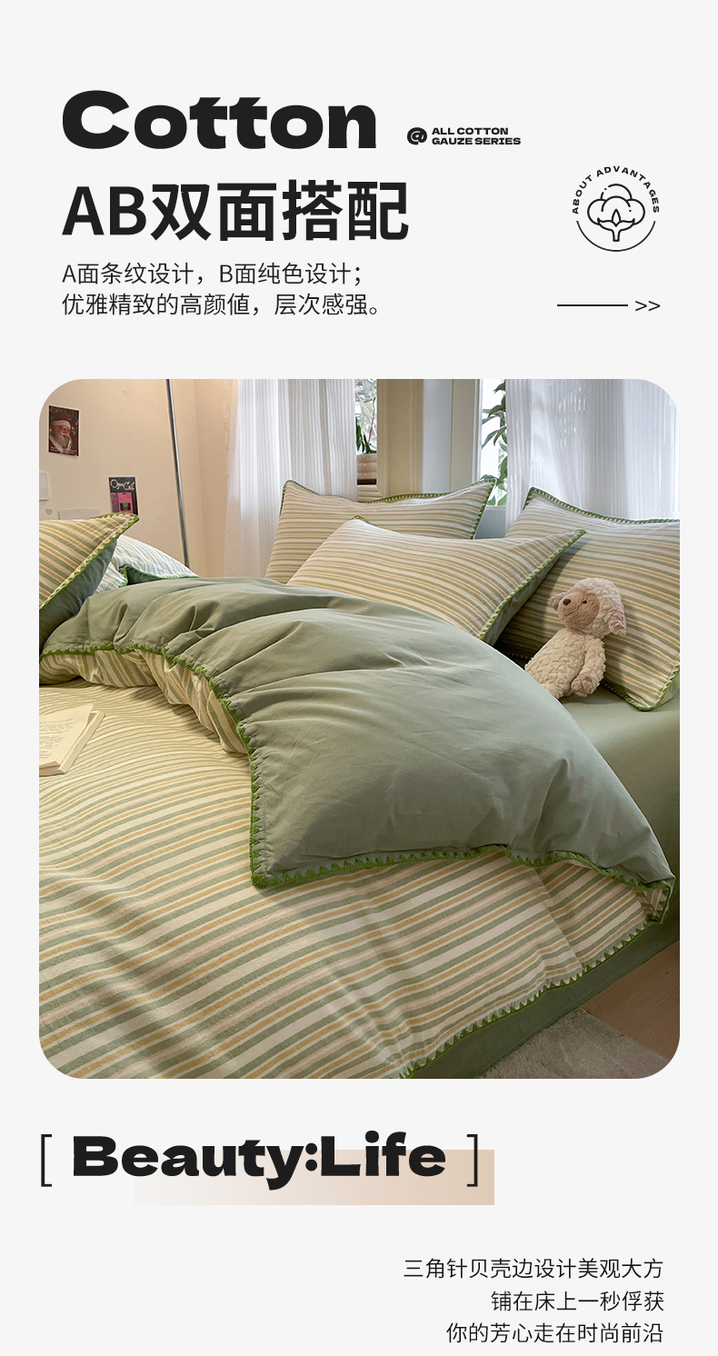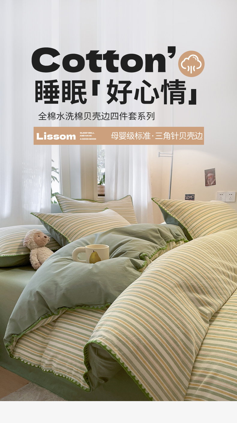 商品名称:蓝邻家纺 2025年新款全棉水洗棉贝壳边四件套系列 柒夏