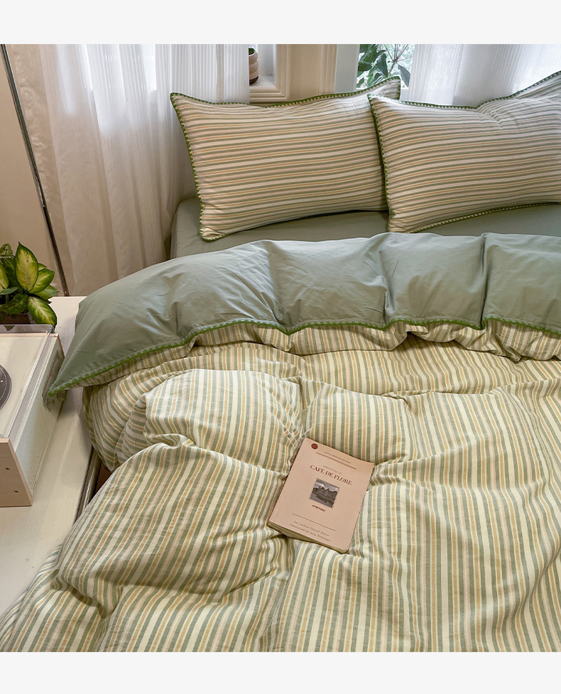 蓝邻家纺 2025年新款全棉水洗棉贝壳边四件套系列 柒夏