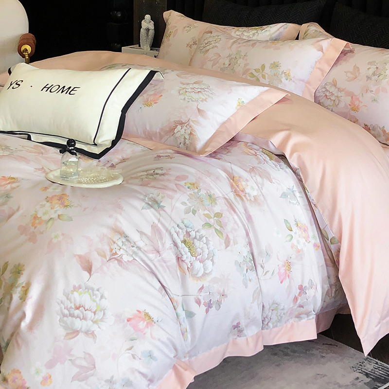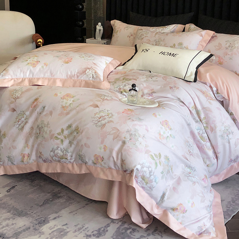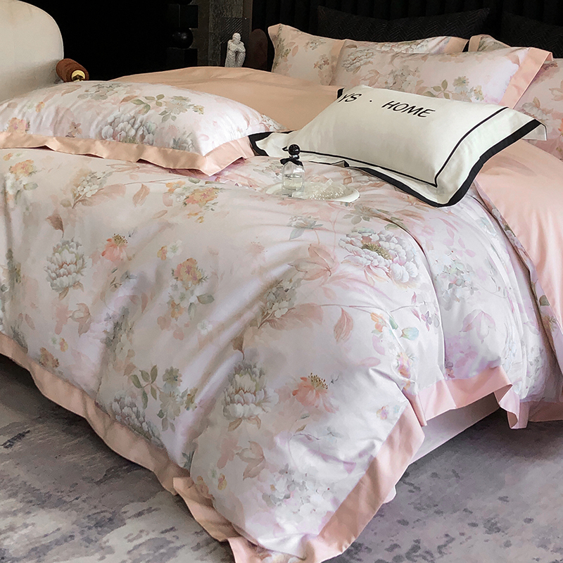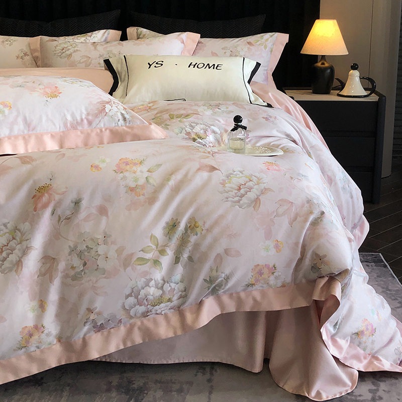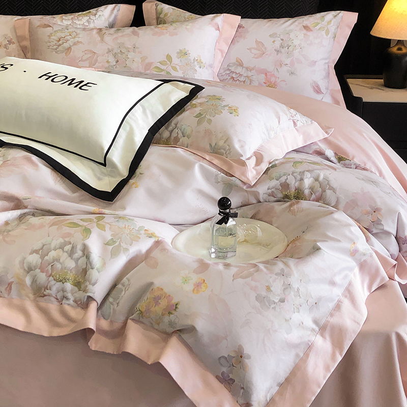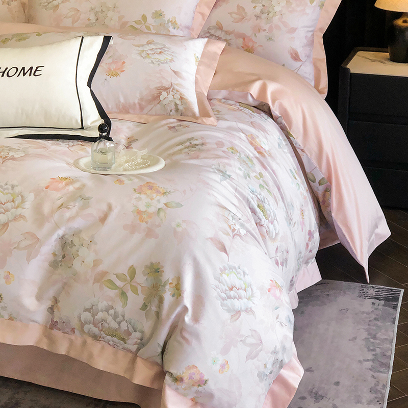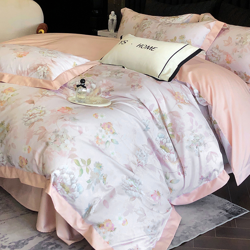 薏思家纺 2025新款100支长绒棉数码印花飞边款四件套 国色天香