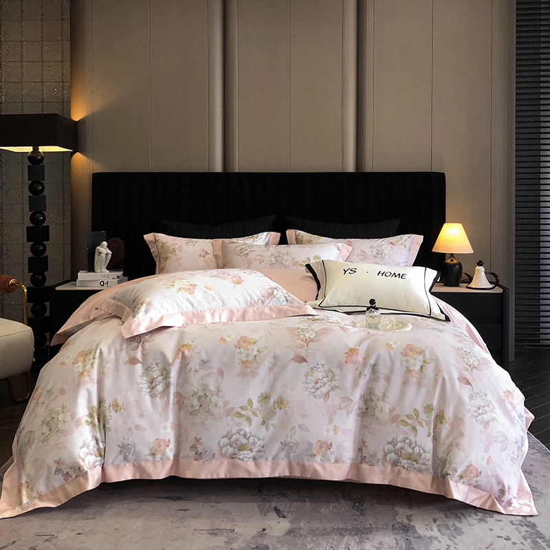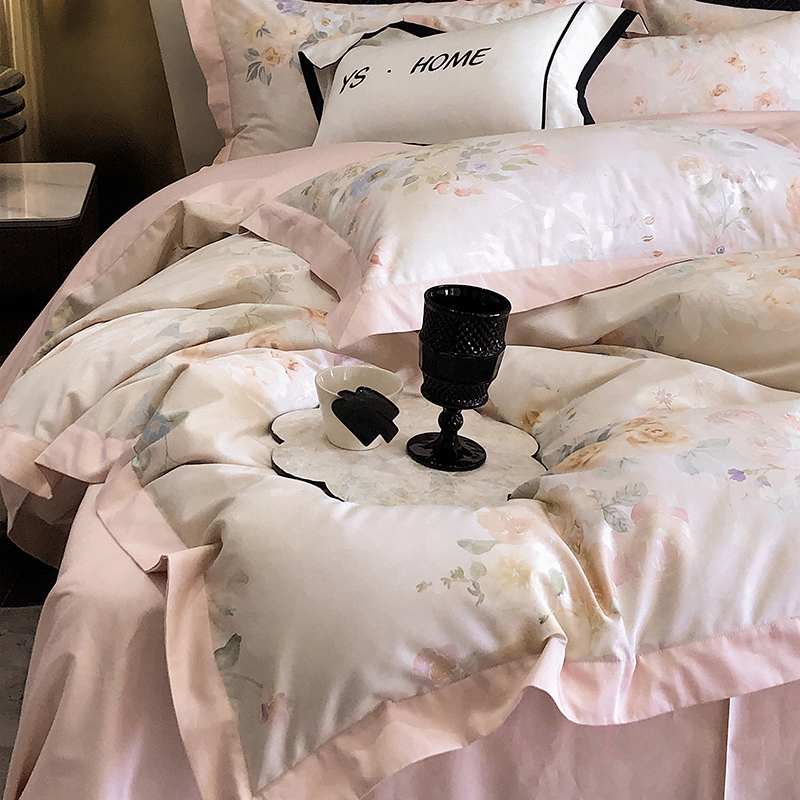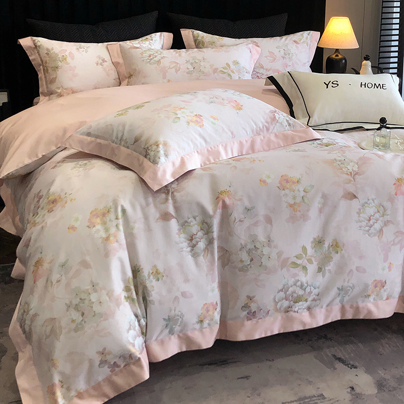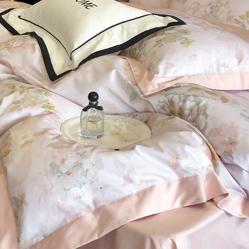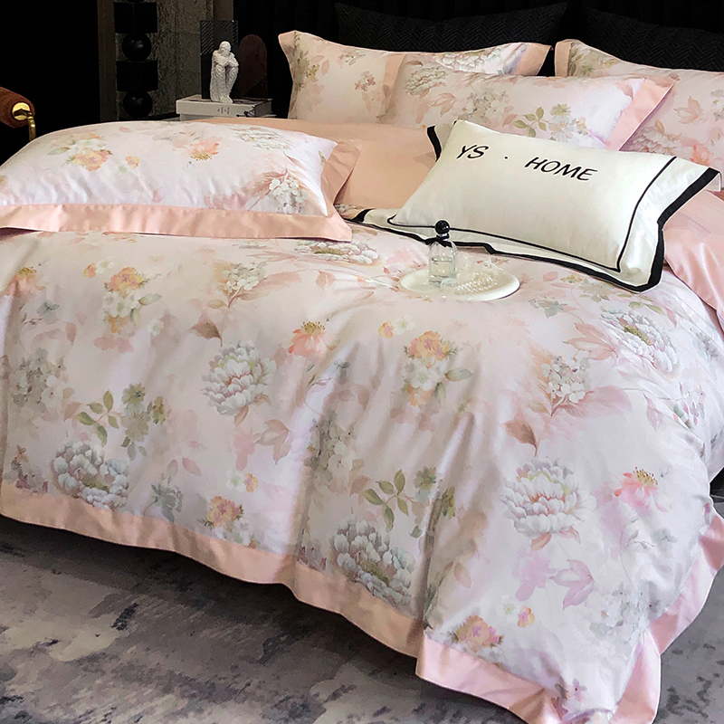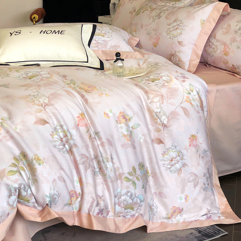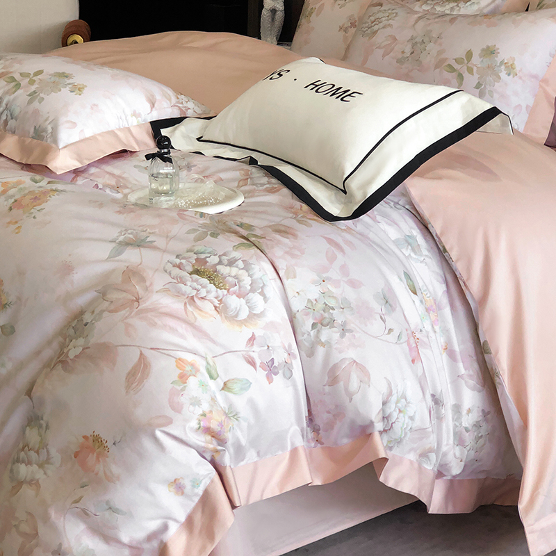 薏思家纺 2025新款100支长绒棉数码印花飞边款四件套 国色天香