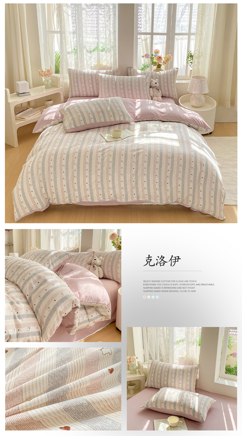 (总)牛牛2025新款高克重简约款水洗棉印花磨毛四件套,草莓兔兔,橘温暖茶,玫瑰花园,清歌雅舞,时光剪影,杏花天影,雨中小熊,玉洁冰清,珠花雨落