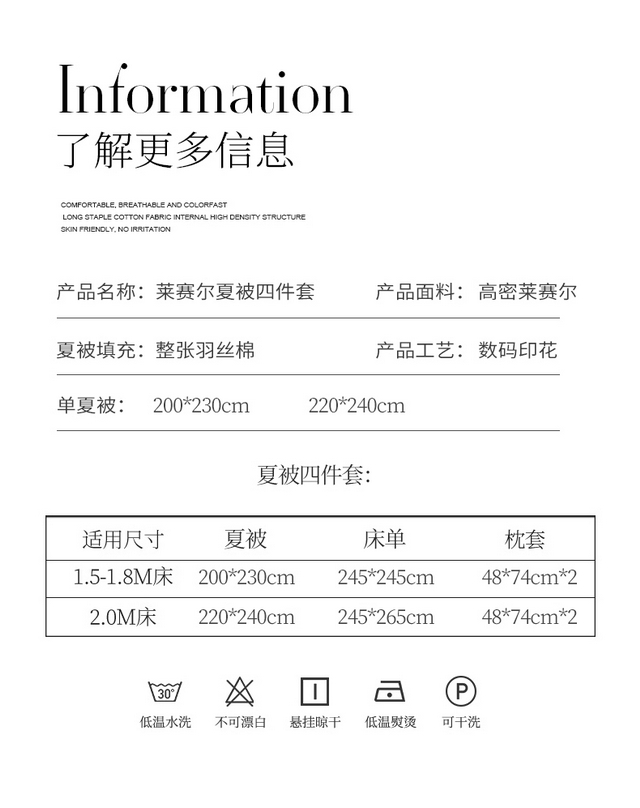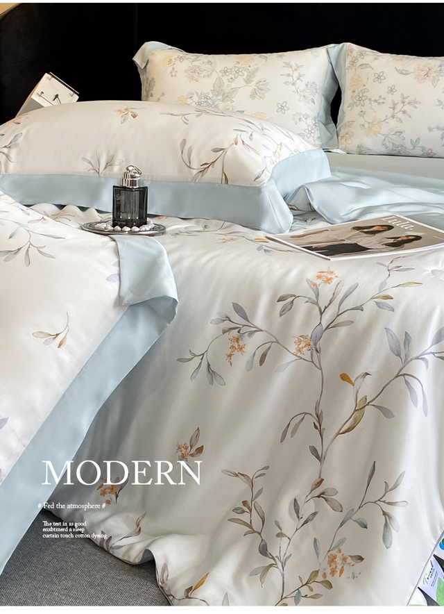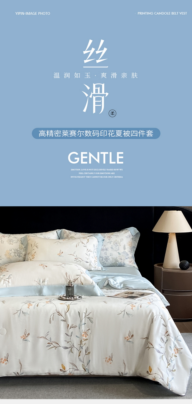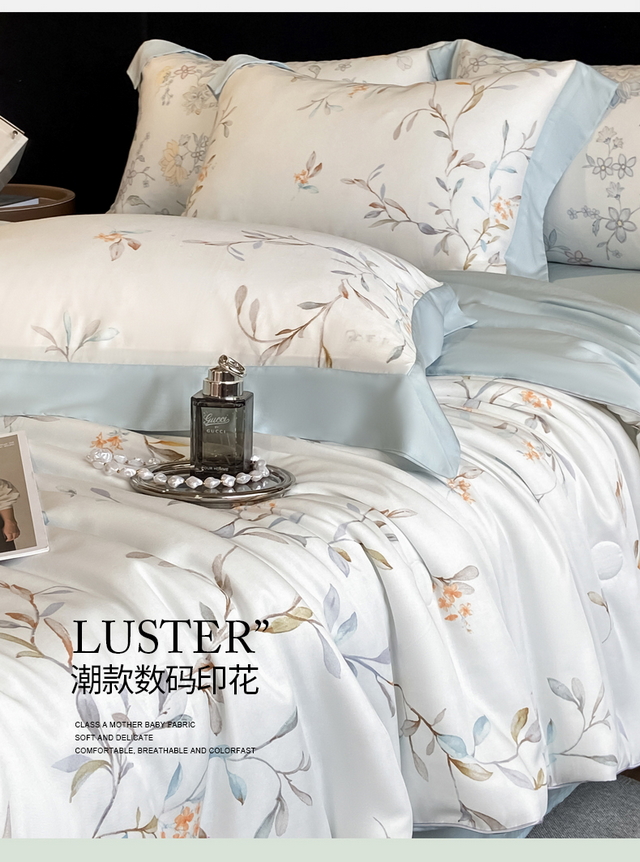 当前位置: 91家纺网 > 商品网购 > 床品套件 > 四件套 > 其它四件套 > 2025春夏新款简奢款嵌绳莱赛尔数码印花夏被四件套单夏被床笠床单款 清雅