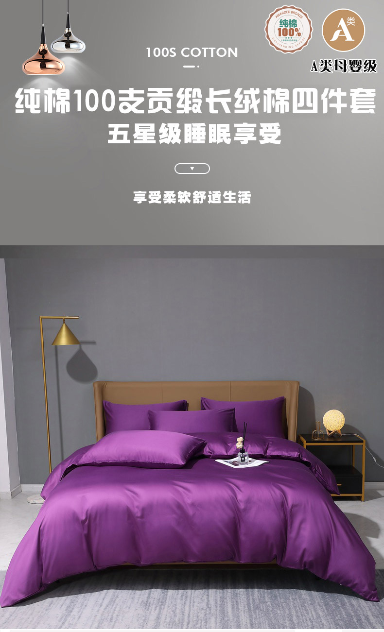 当前位置: 91家纺网 > 商品网购 > 床品套件 > 四件套 > 长绒棉四件套 > 晶缦家纺 2025新款全棉纯棉50支双股贡缎长绒棉纯色多规格四件套 绮芸-罗兰紫
