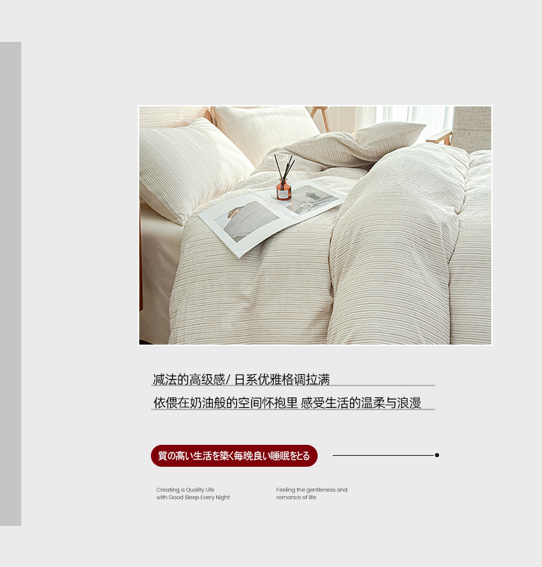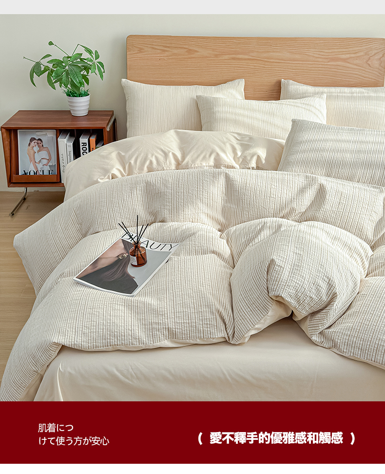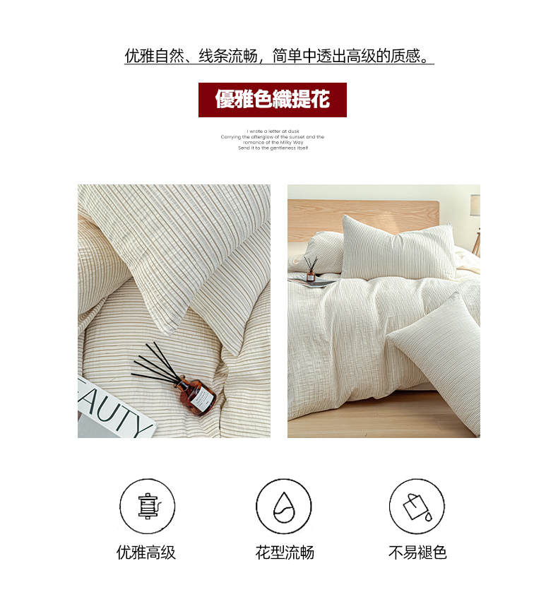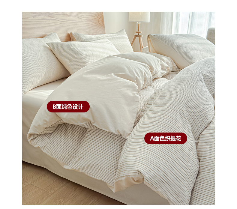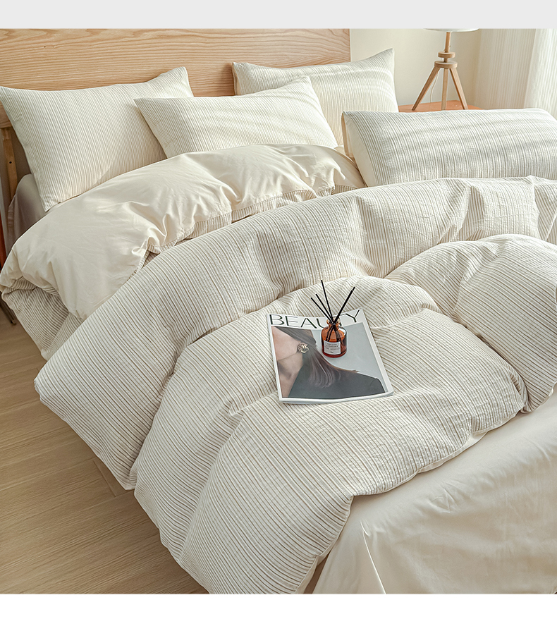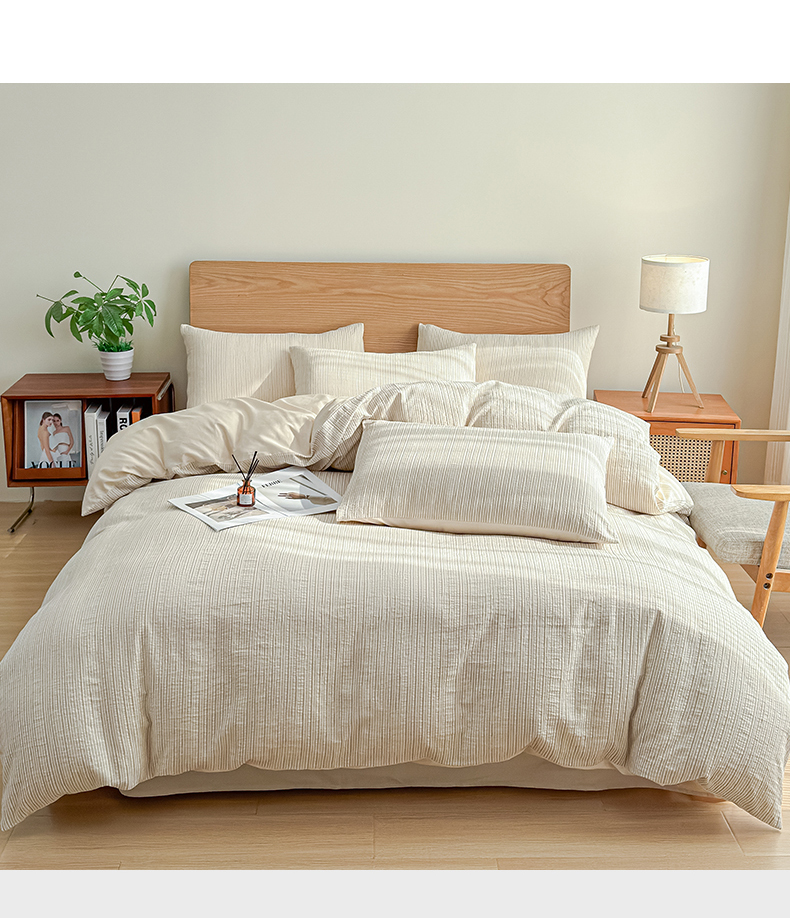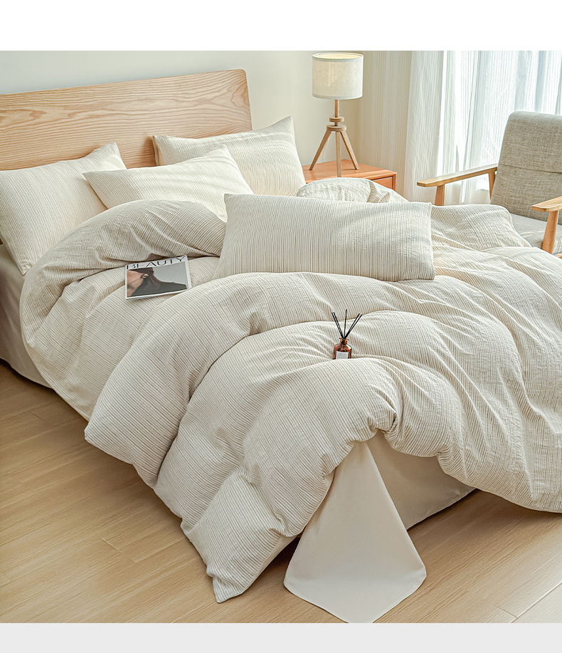 莱茵家居 2025春夏新款A类色织皱皱纱全棉四件套 静寂-米色
