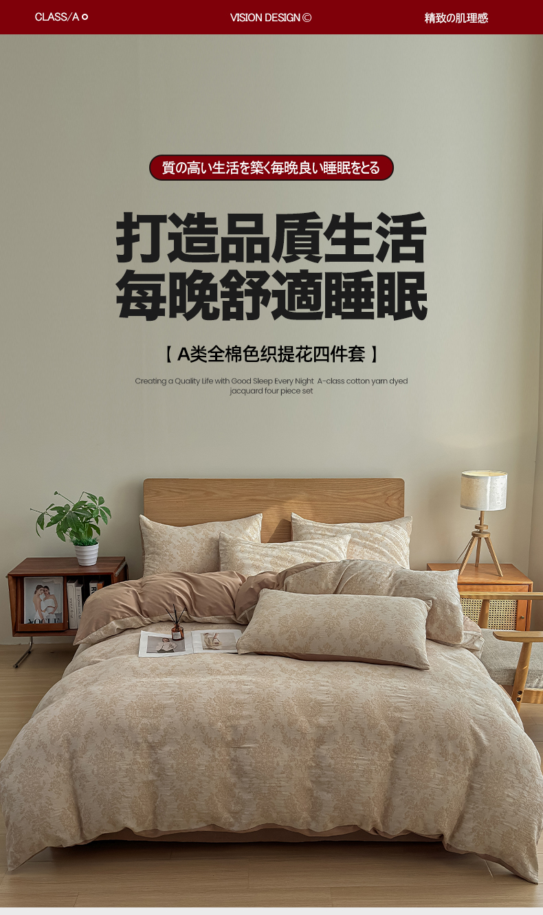 (总)莱茵家居 2025新款A类60支厚织提花美拉德风全棉纯棉四件套-暮合系列,暮合-可可,暮合-米咖,暮合-奶茶,暮合-棕榈