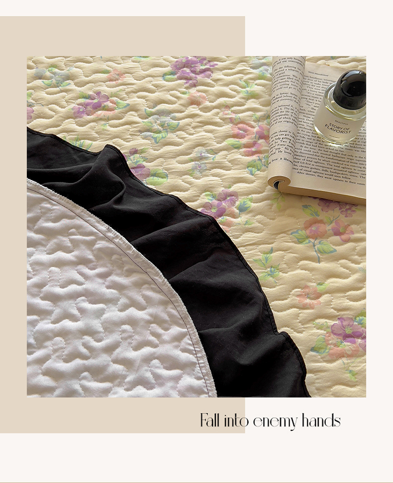 商品名称:(总)韩秀家纺 2025法式赫本风四季跑量款花边夹棉床盖加厚水洗棉泡泡棉糯感印花韩版床盖三件套小清新榻榻米绗缝床盖夹棉床盖纯色床盖印花床盖