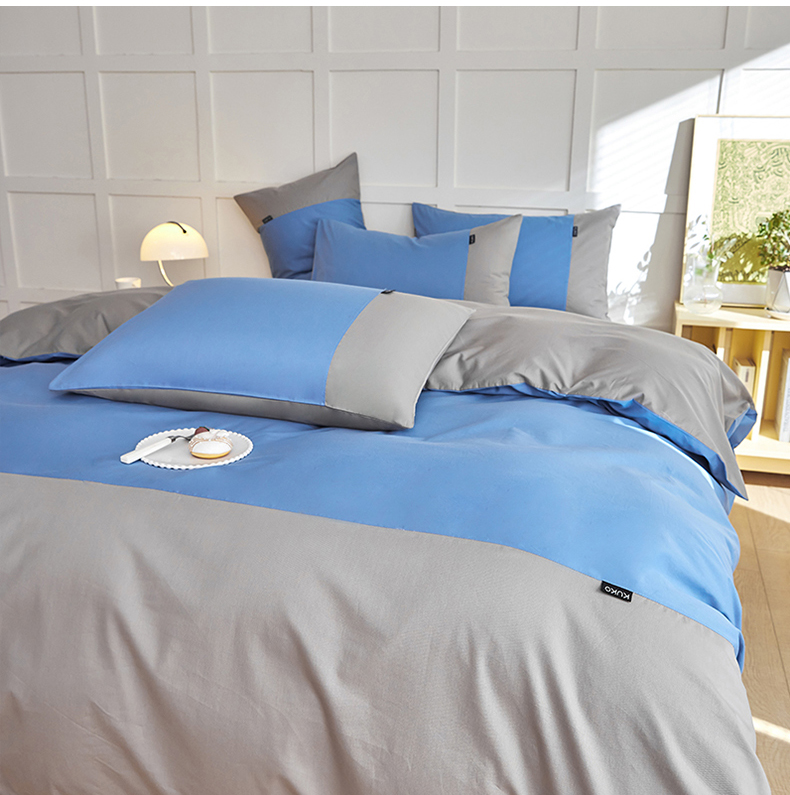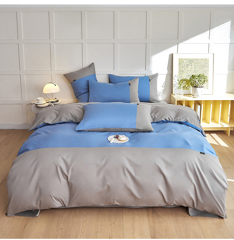 慕希2025新款13372全棉拼色正拼四件套系列-简尚 简尚-蓝灰