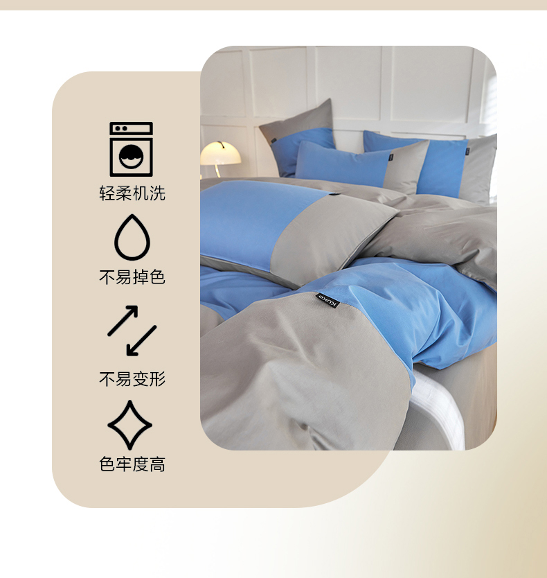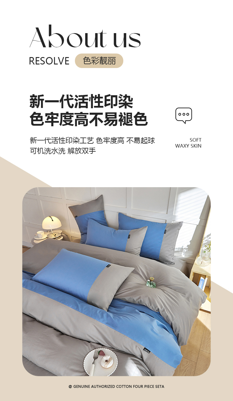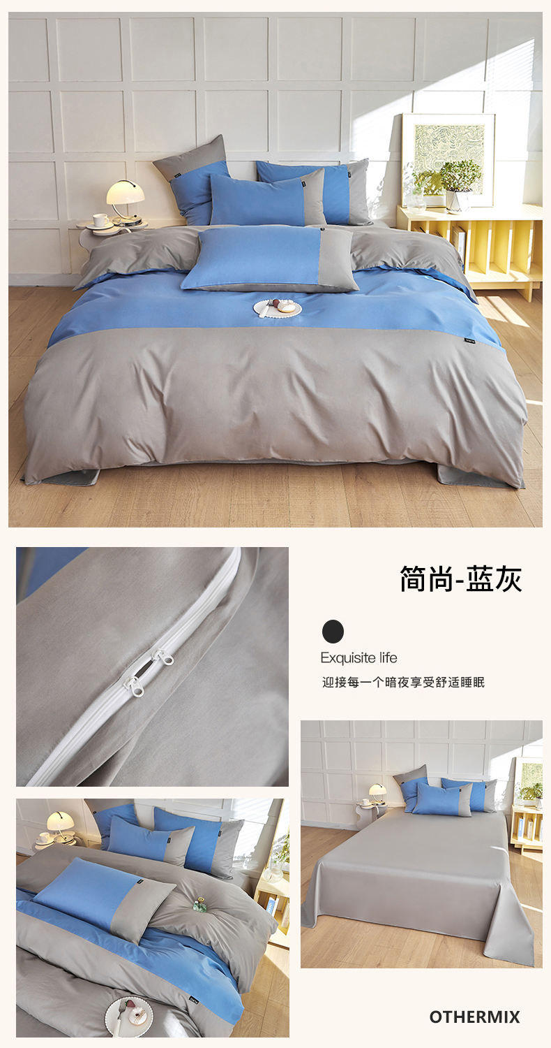 商品名称:慕希2025新款13372全棉拼色正拼四件套系列-简尚 简尚-蓝灰