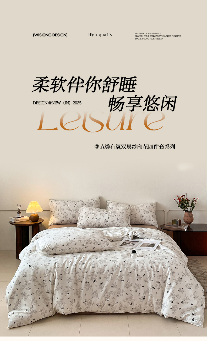 诺梵家纺 2025新款有氧双层纱印花四件套 沉香