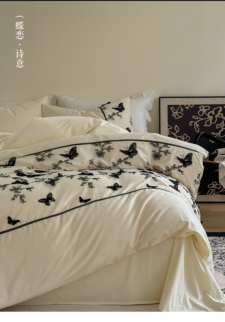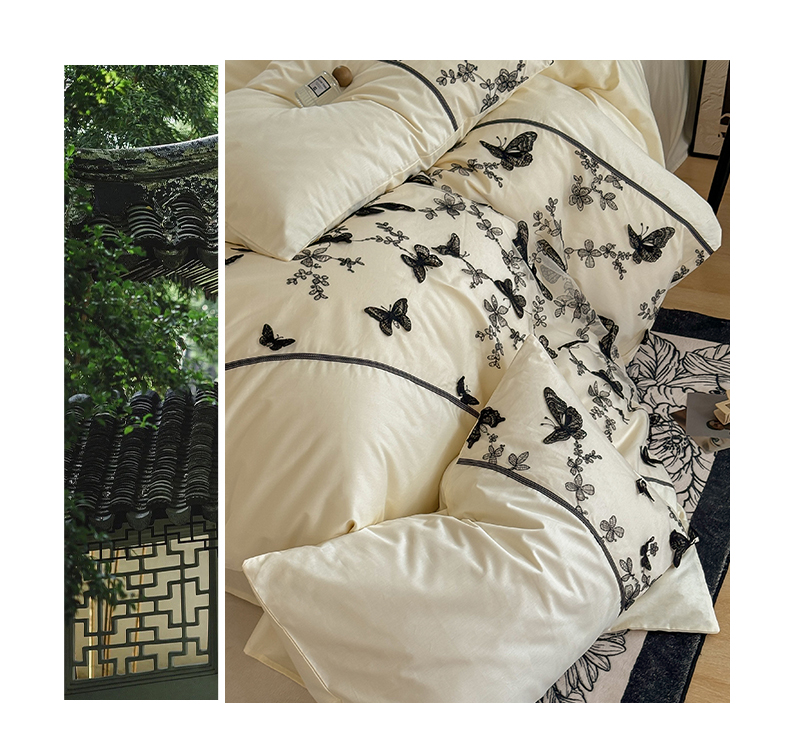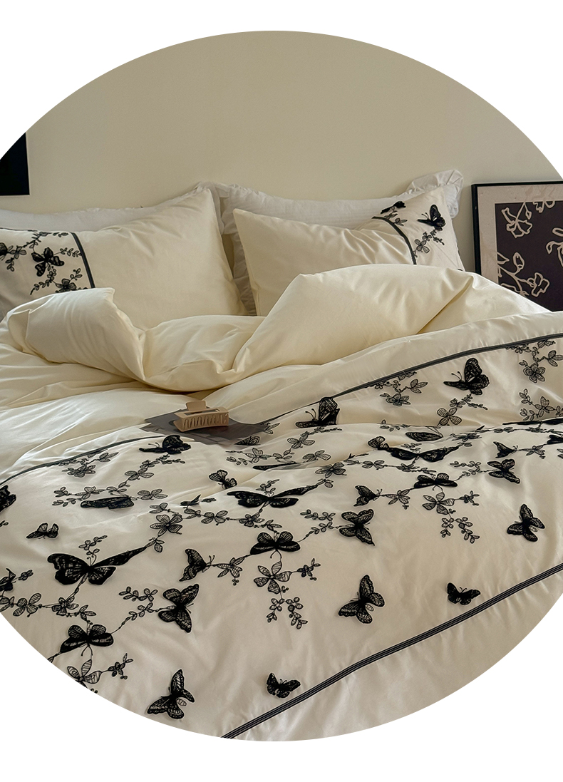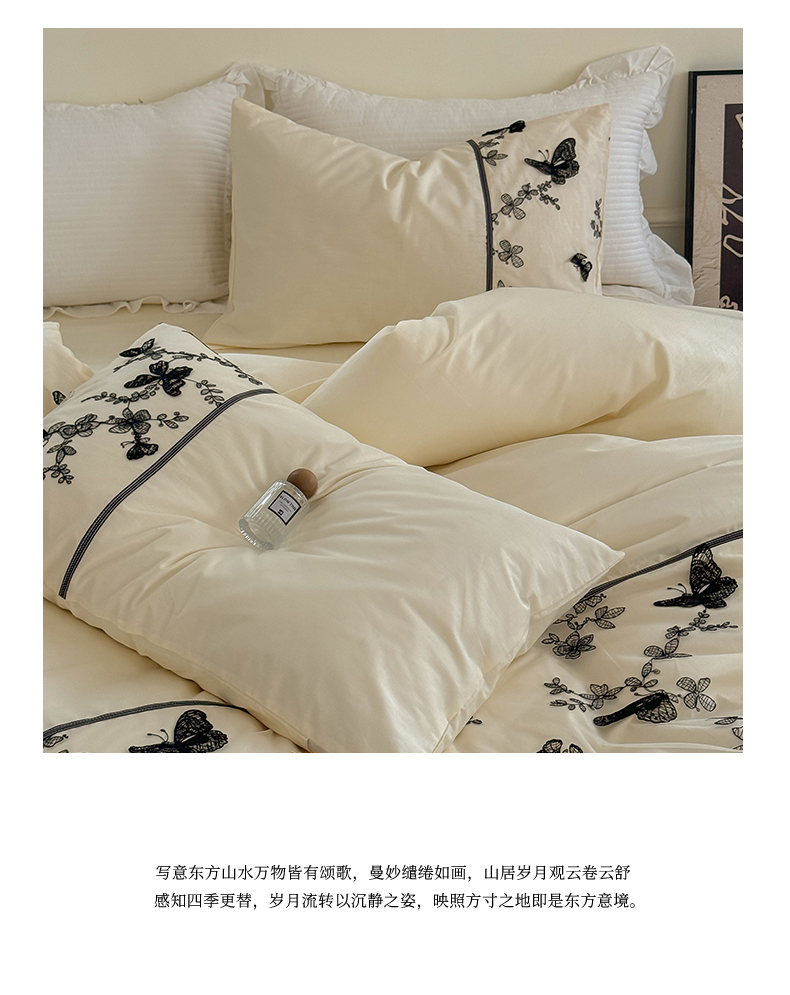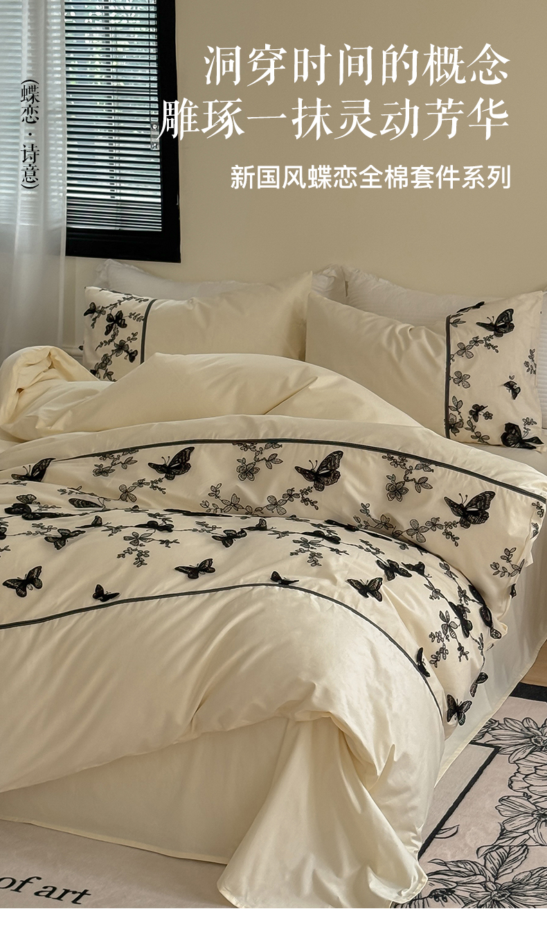 2025新款水墨黑蝴蝶全棉套件 蝶恋米