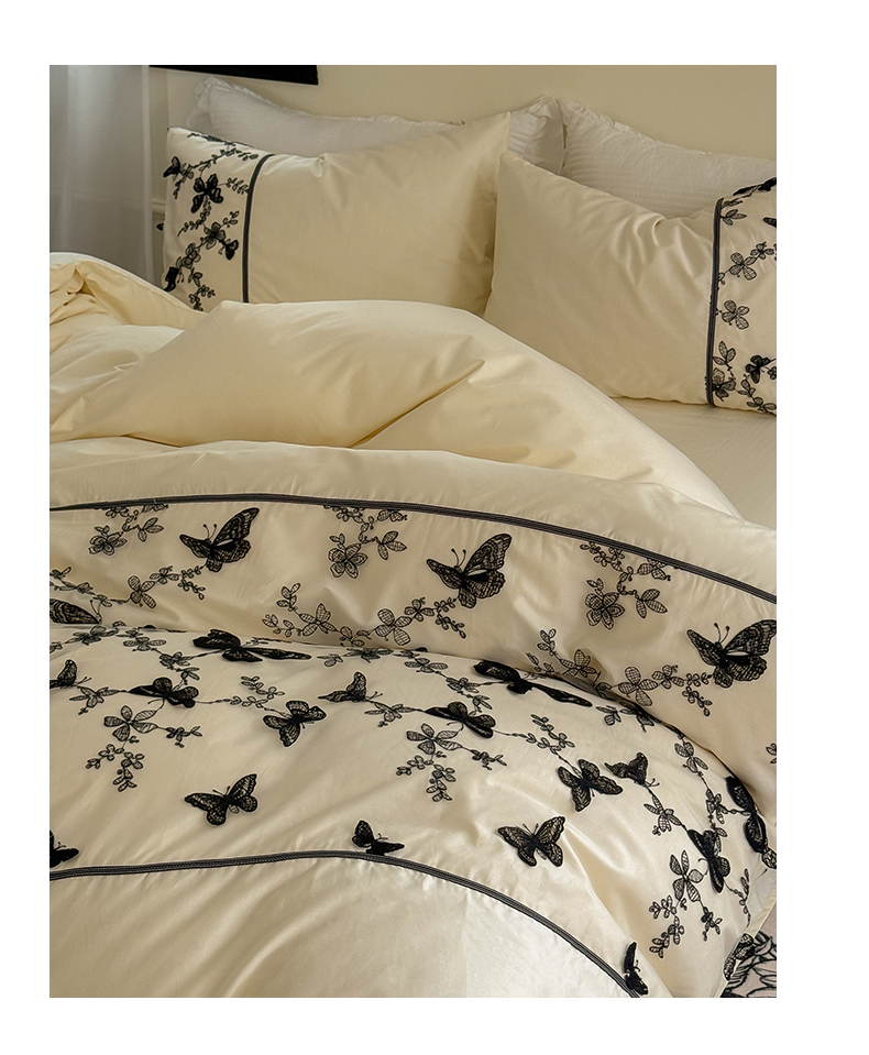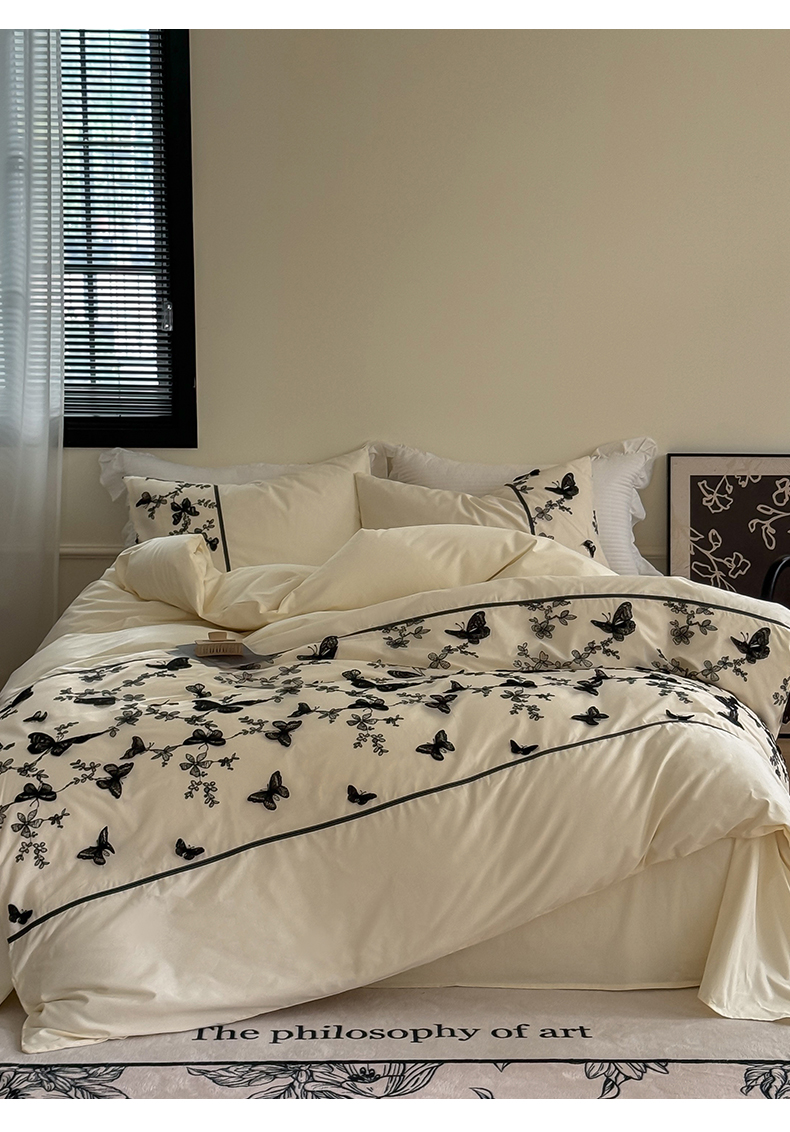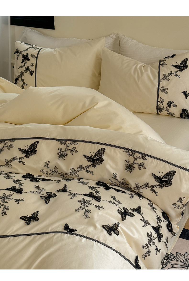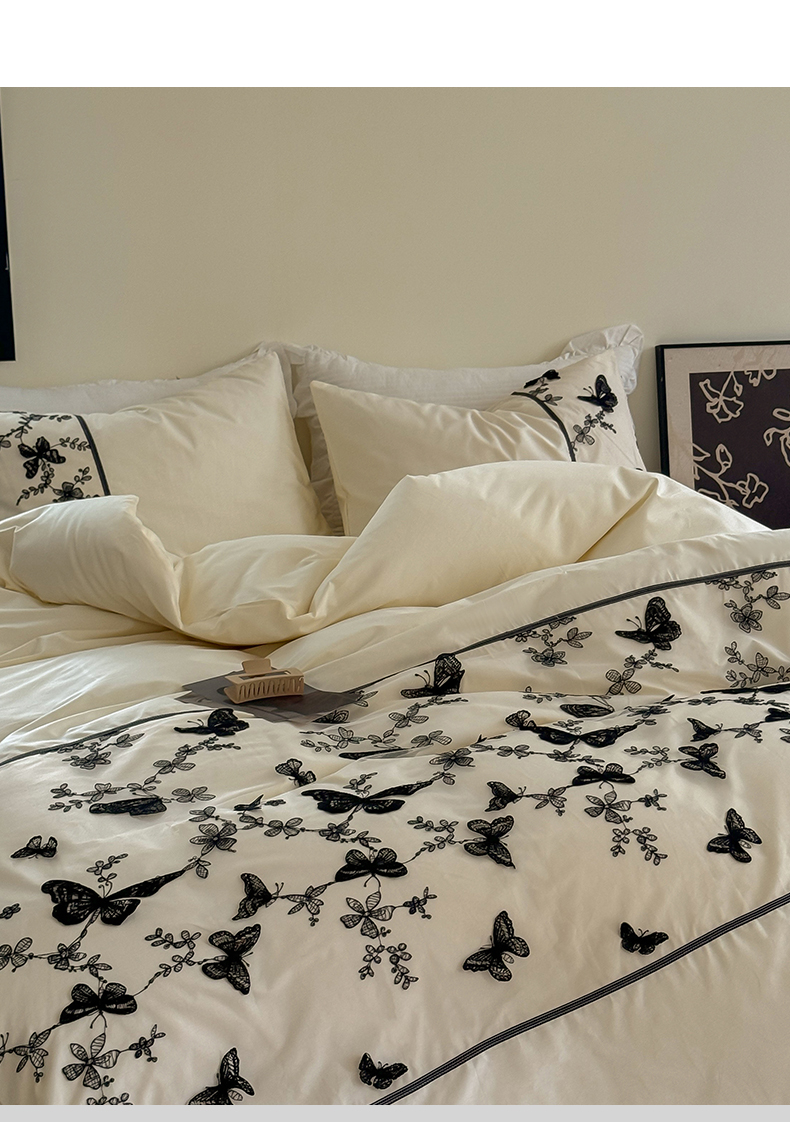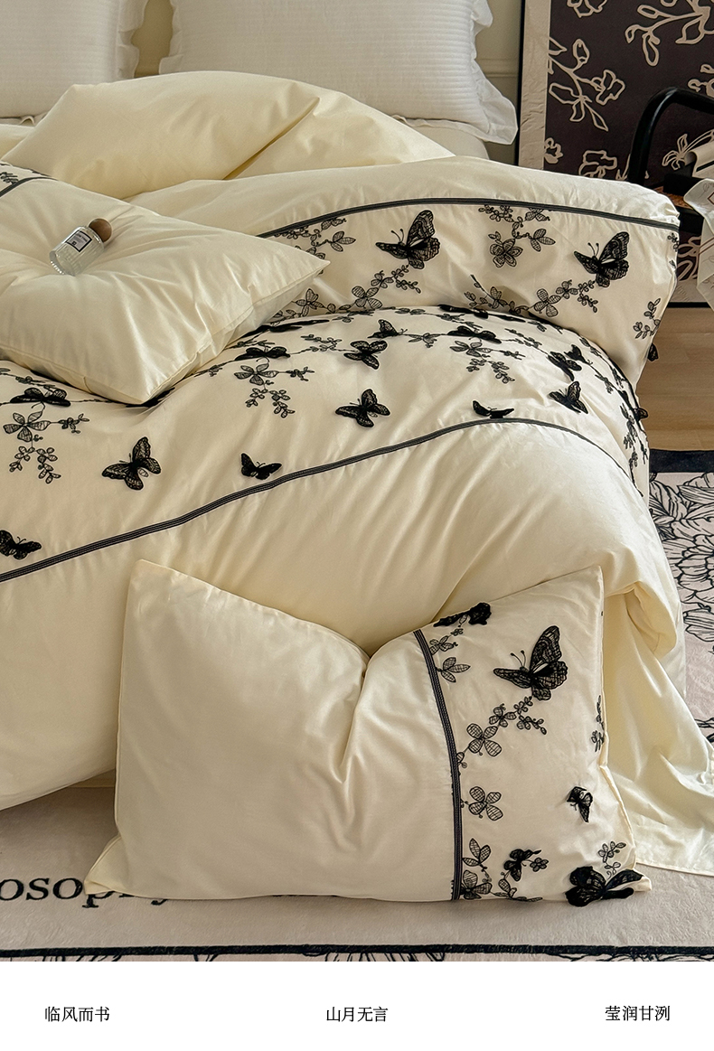 2025新款水墨黑蝴蝶全棉套件 蝶恋米