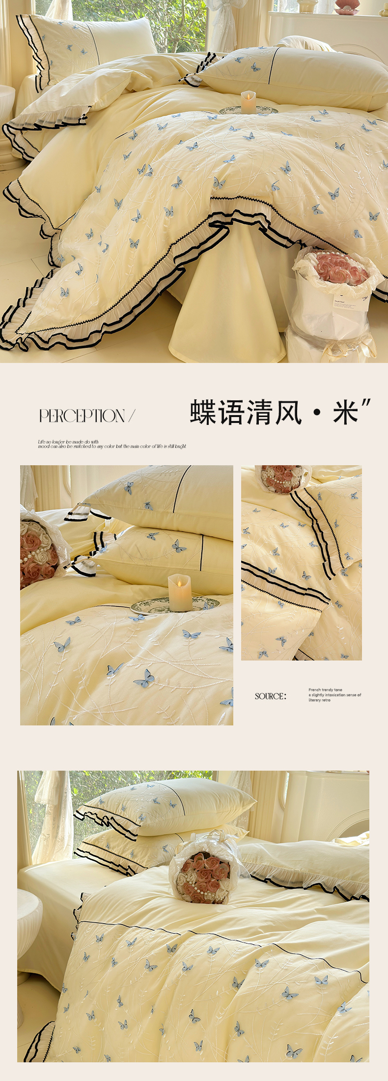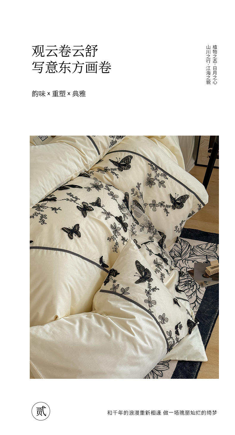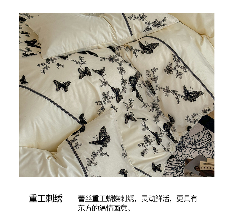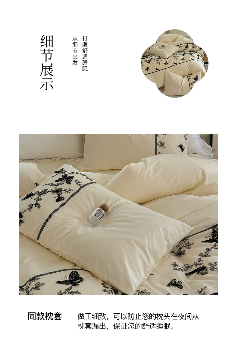 商品名称:2025新款水墨黑蝴蝶全棉套件 蝶恋米