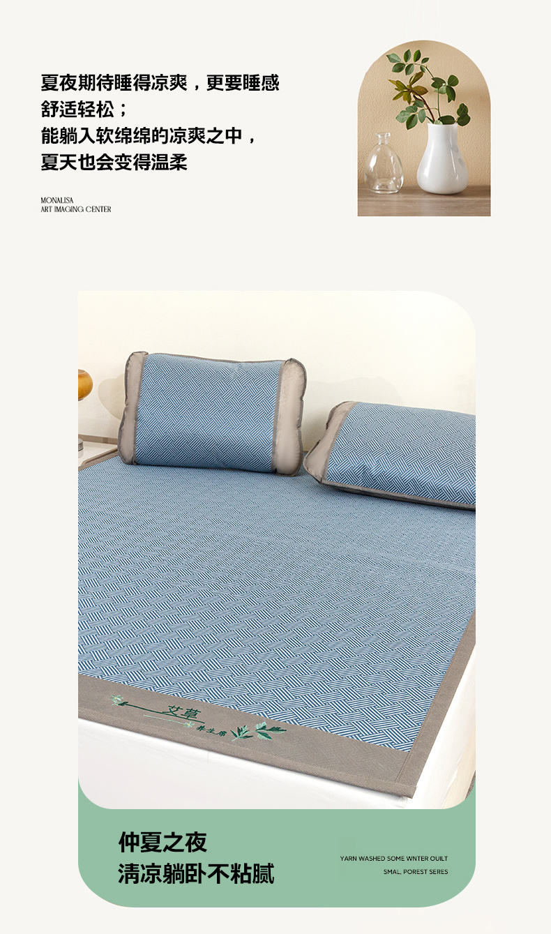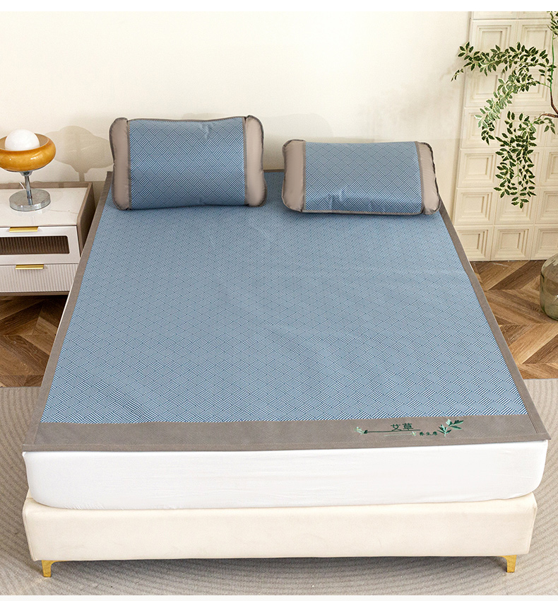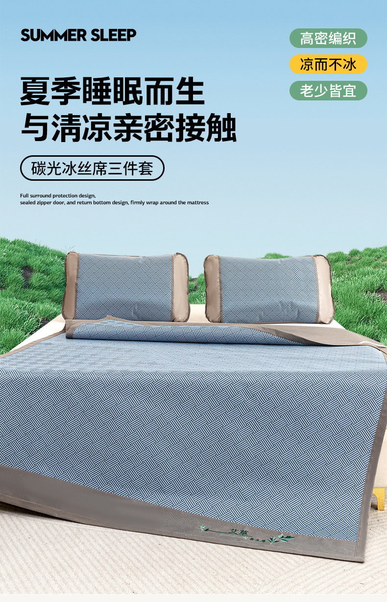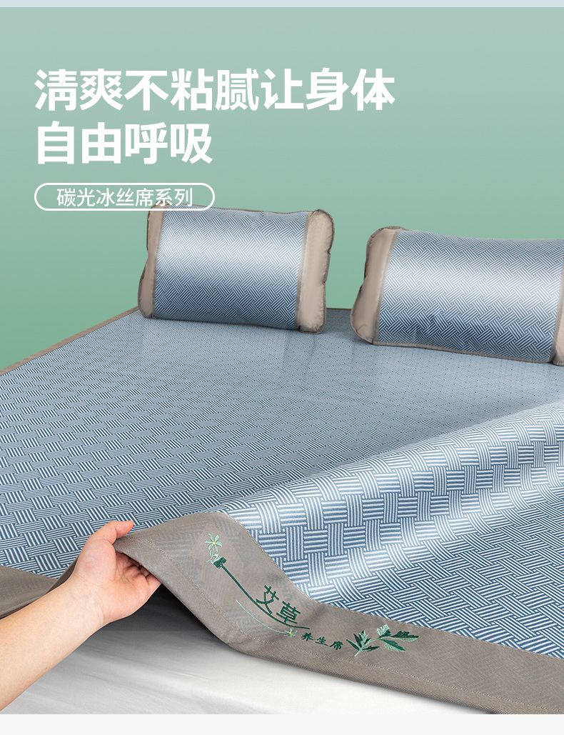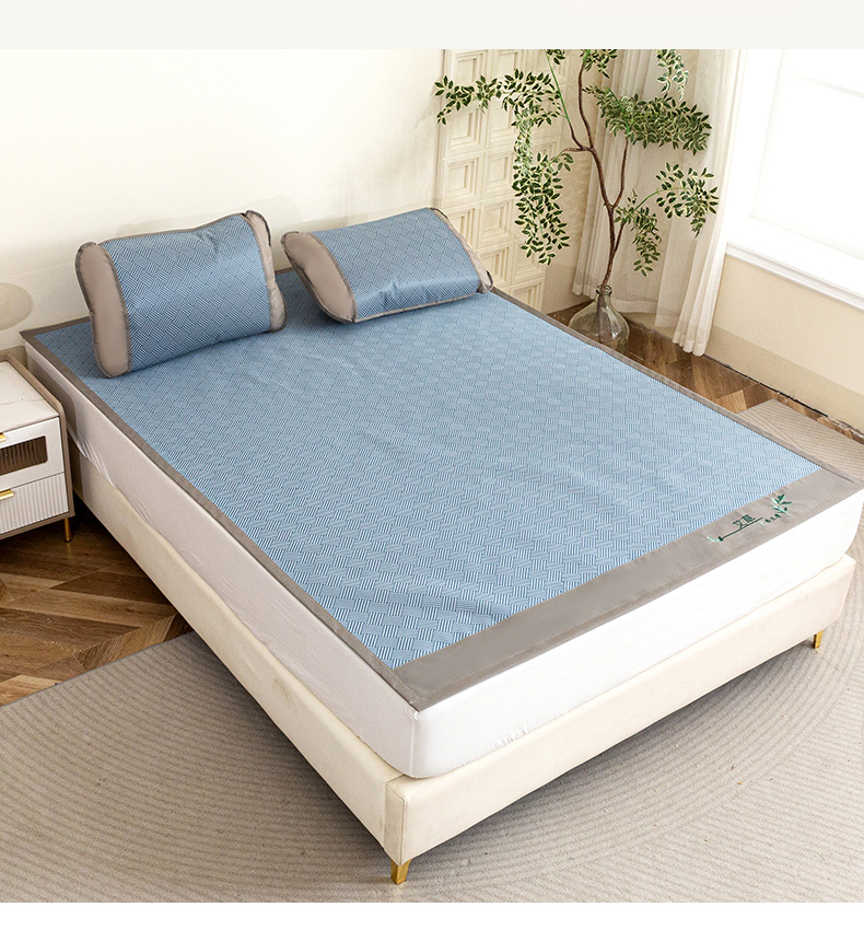 商品名称:丹兰 2025新款碳光冰丝席三件套竹席冰藤席艾草席学生席双人床凉席 碳光饼干花 蓝