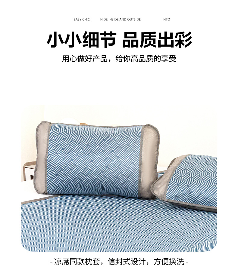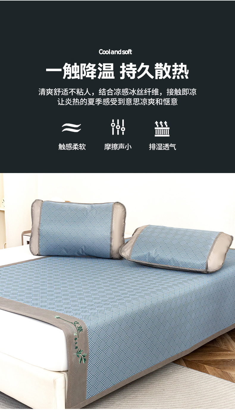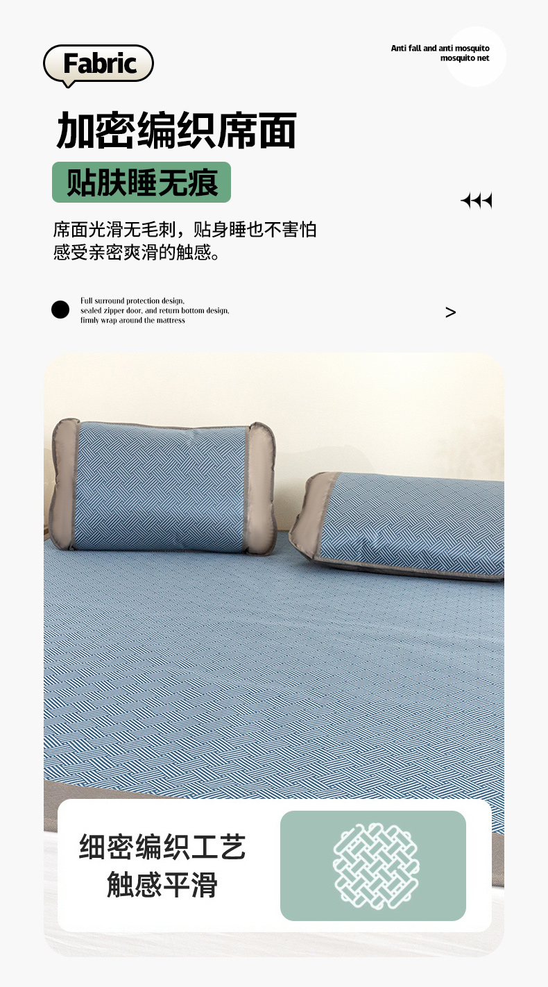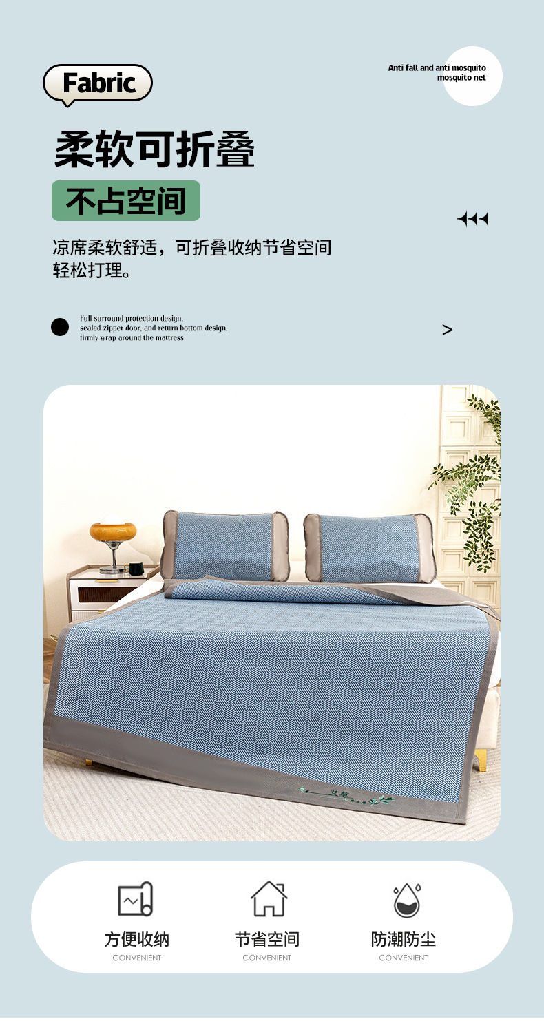商品名称:丹兰 2025新款碳光冰丝席三件套竹席冰藤席艾草席学生席双人床凉席 碳光饼干花 蓝