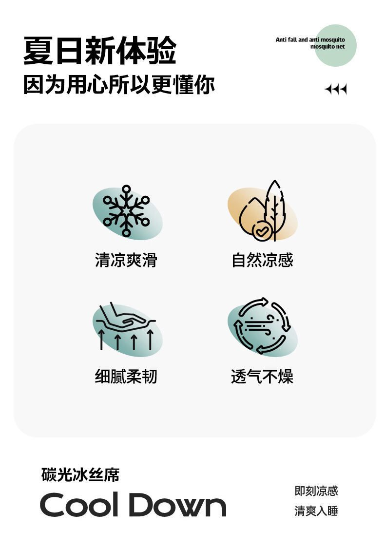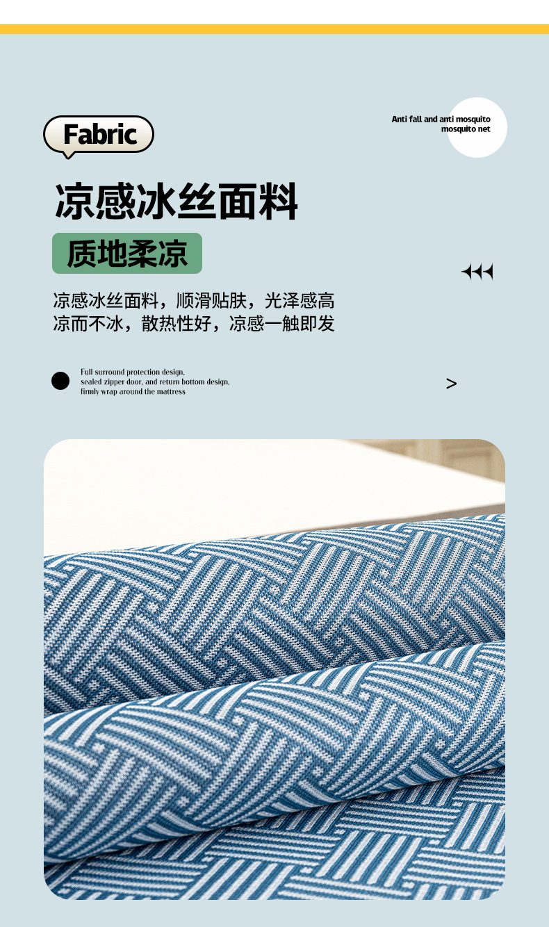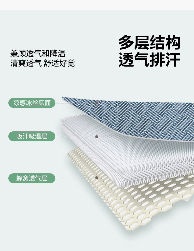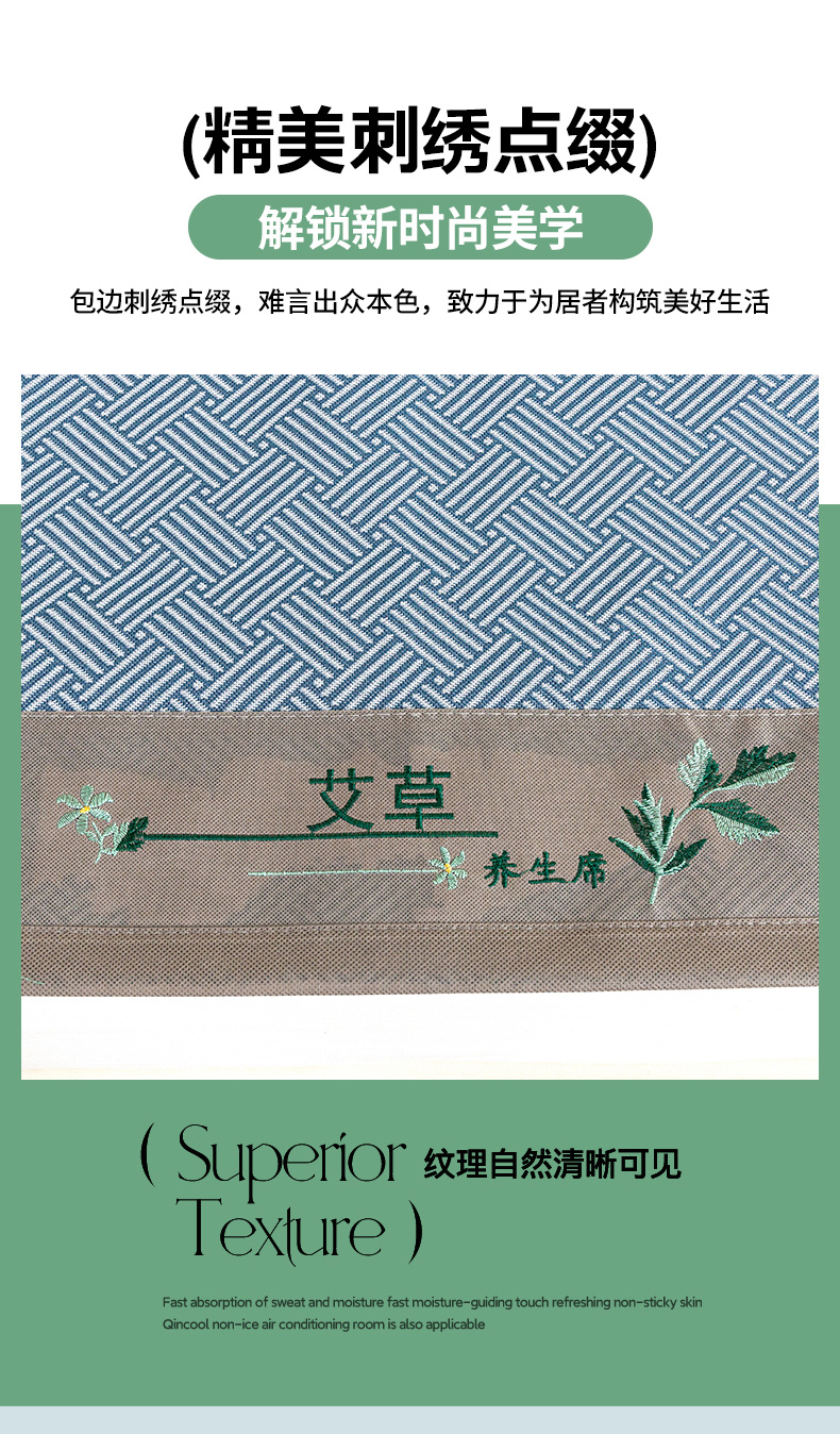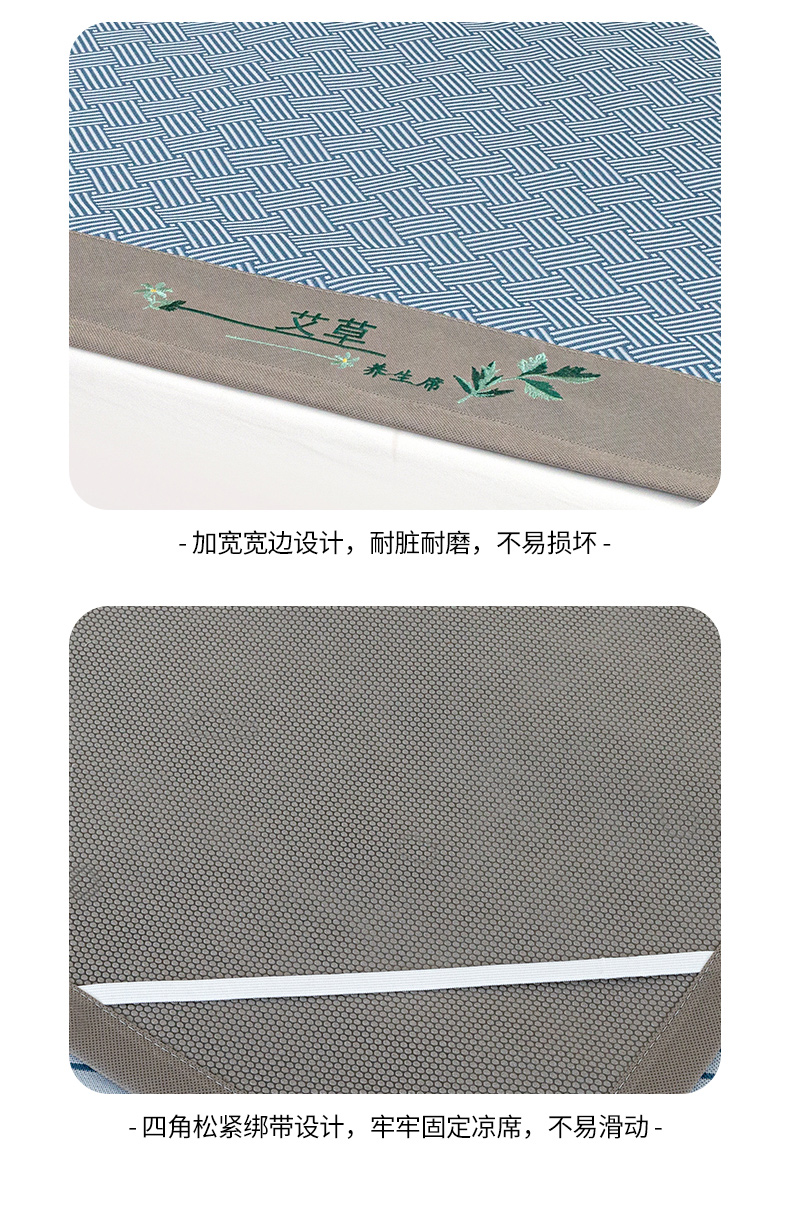 商品名称:丹兰 2025新款碳光冰丝席三件套竹席冰藤席艾草席学生席双人床凉席 碳光饼干花 蓝