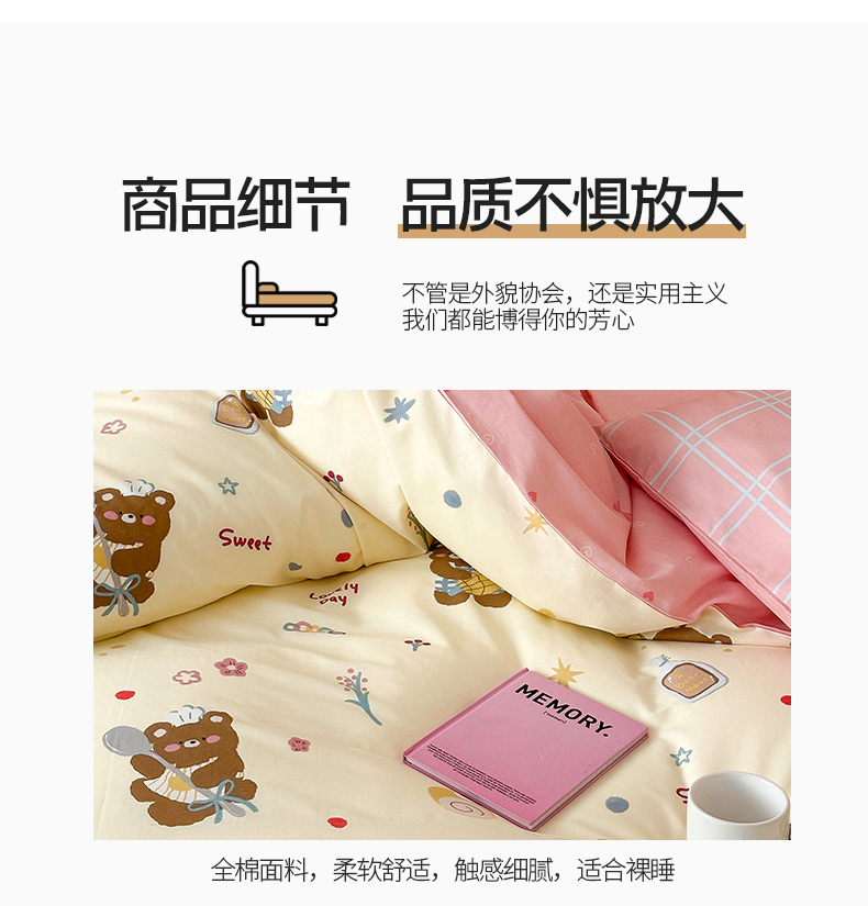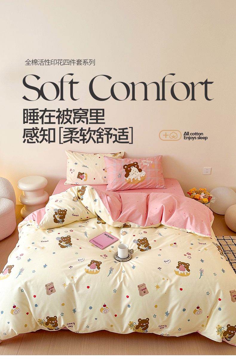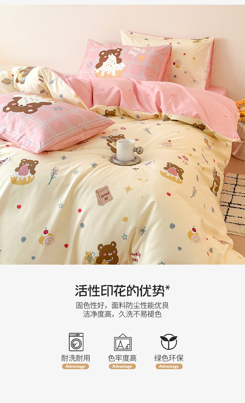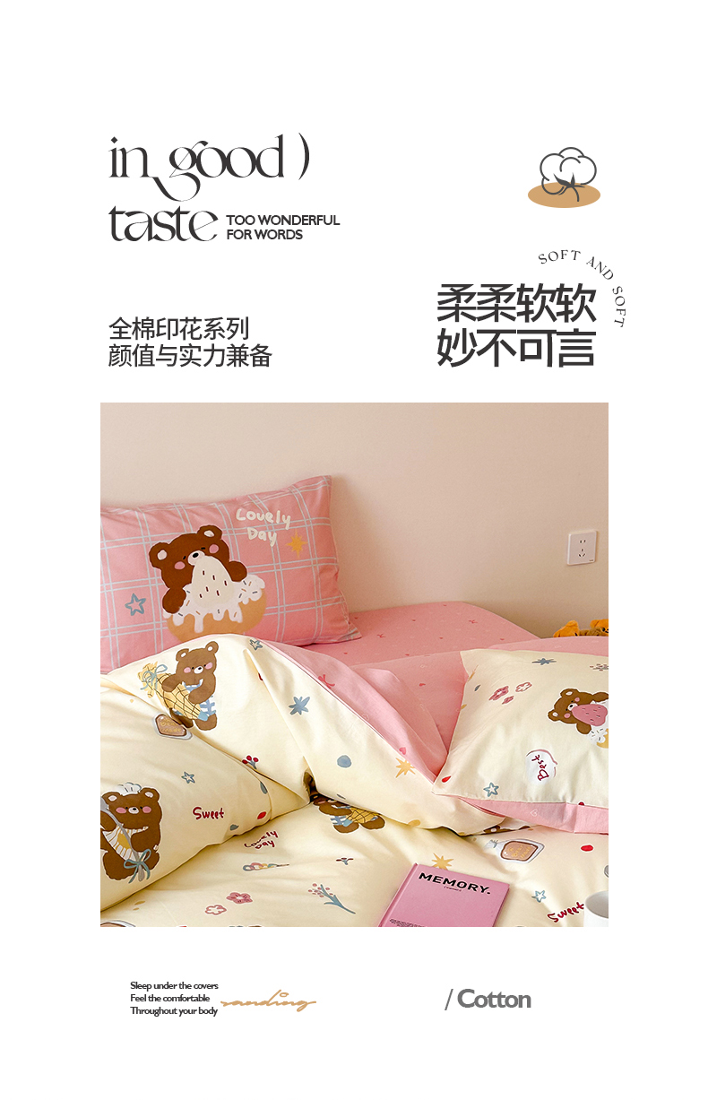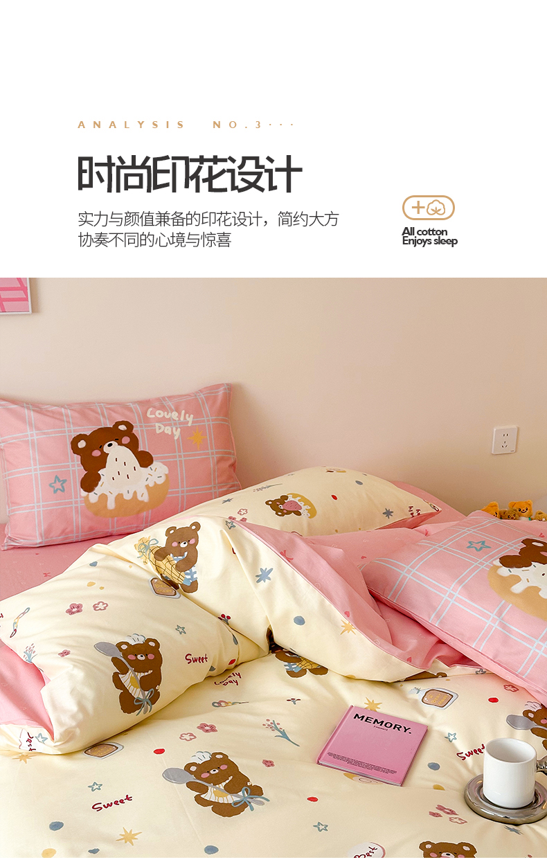 商品名称:典曼家纺 2025新款13372印花小清新四件套 烘焙小熊