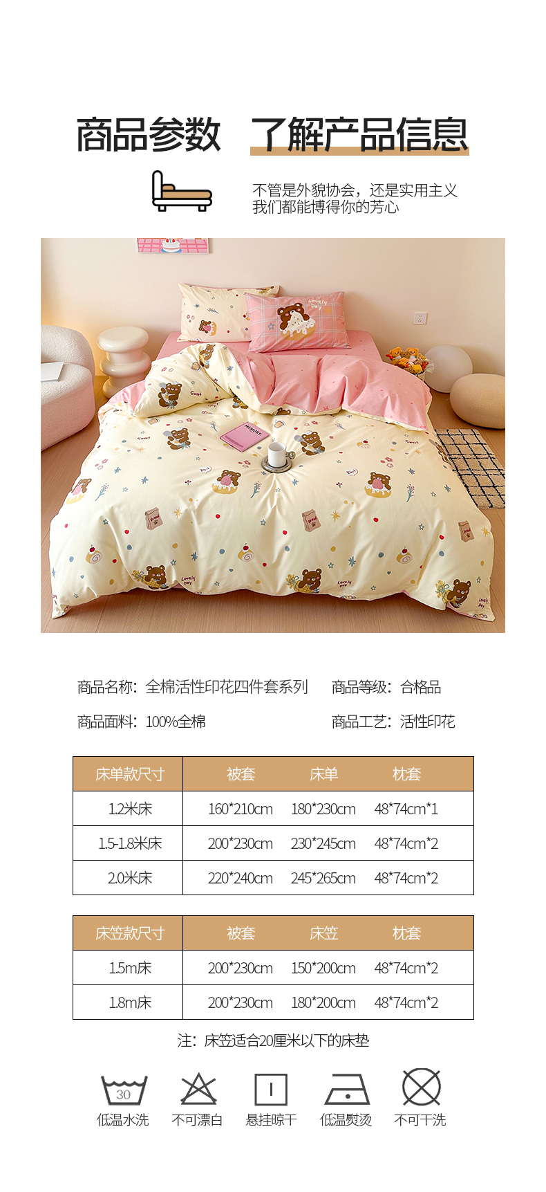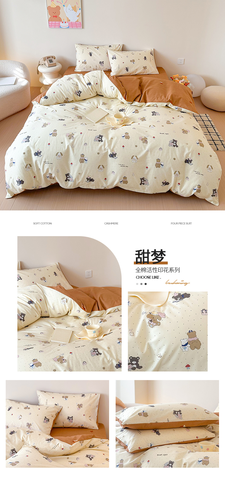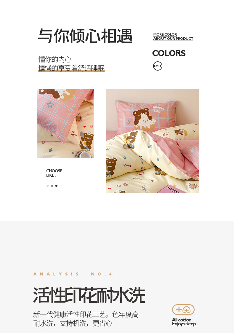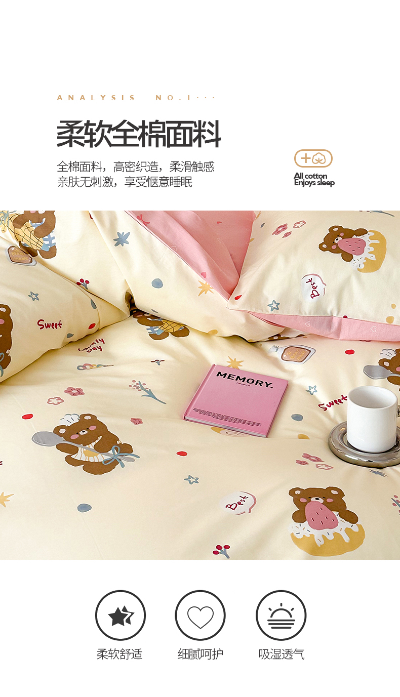 商品名称:典曼家纺 2025新款13372印花小清新四件套 烘焙小熊