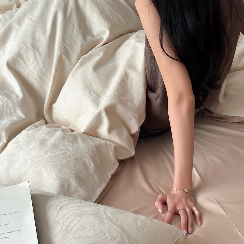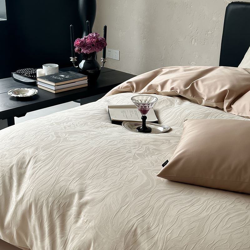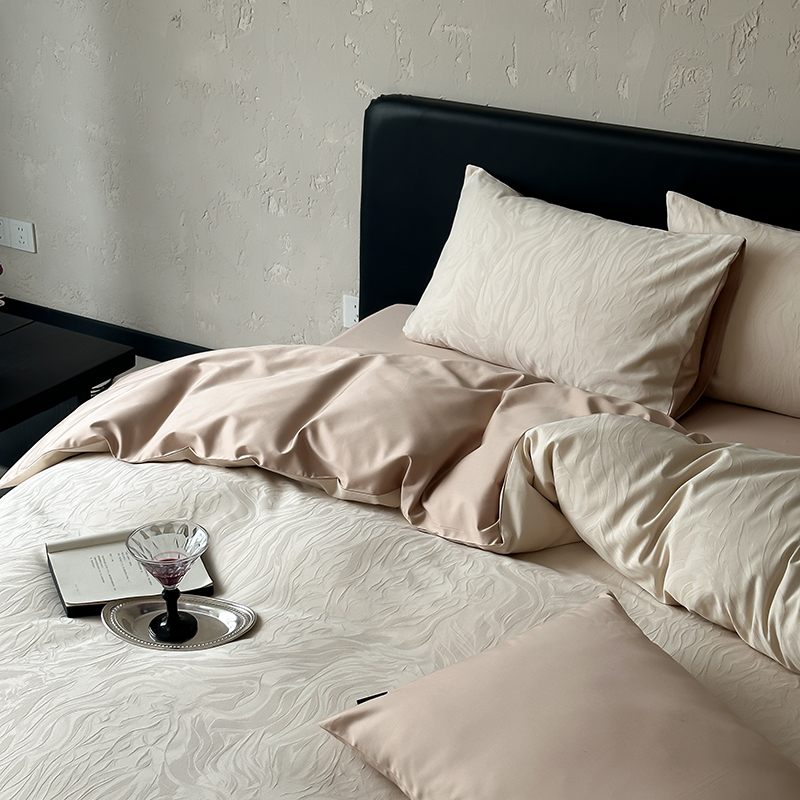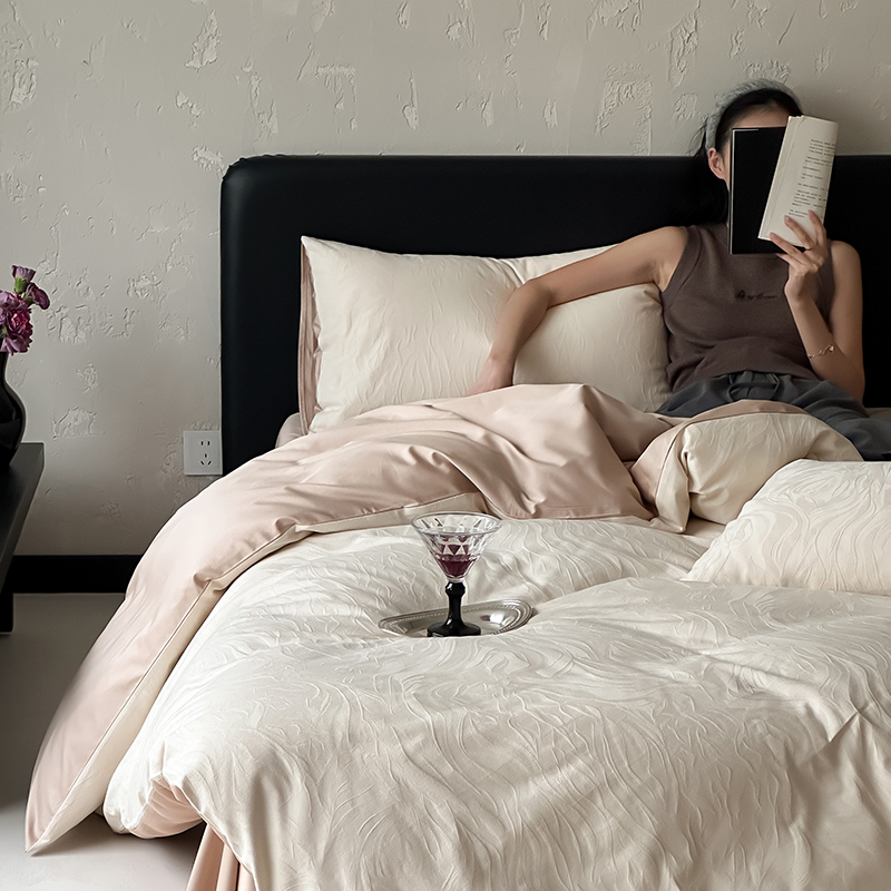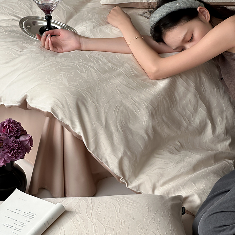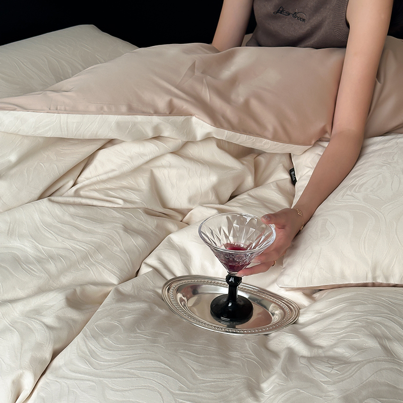 玉宇阁 2025新款100S全棉大提花四件套-雨雾 燕麦烤茶