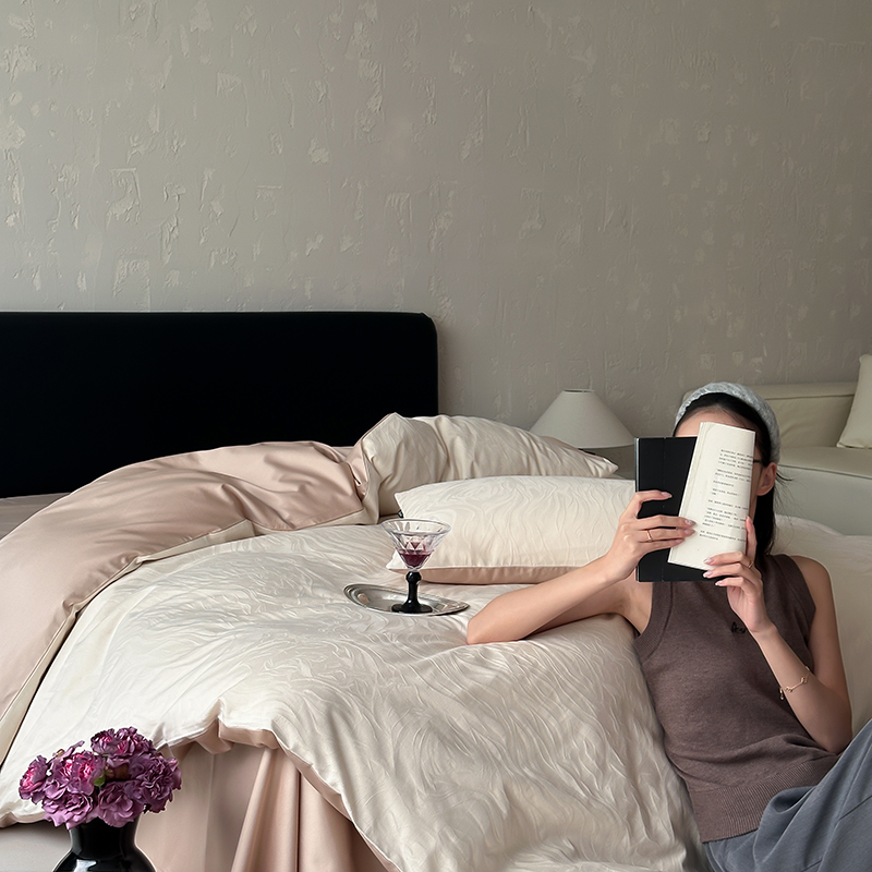 (总)玉宇阁家居 2023新款春夏60支兰精天丝拼色四件套,都市灰香槟,海盐松露,芥末黄香槟,裸粉香槟,茉莉奶绿,浅灰鹅黄,若草乳白