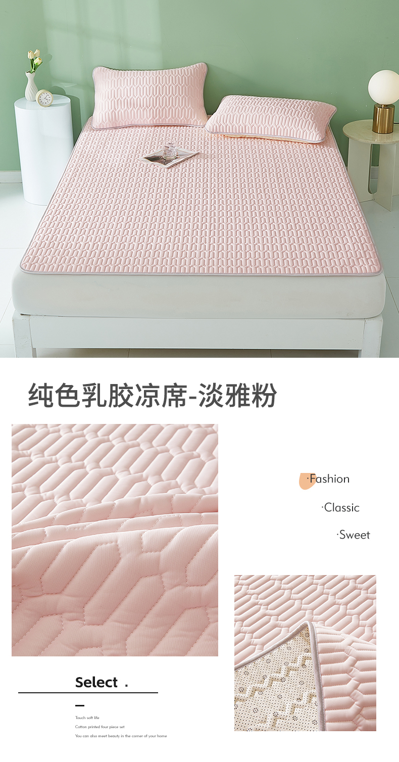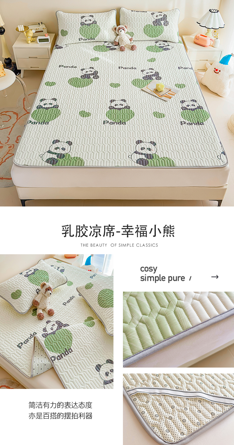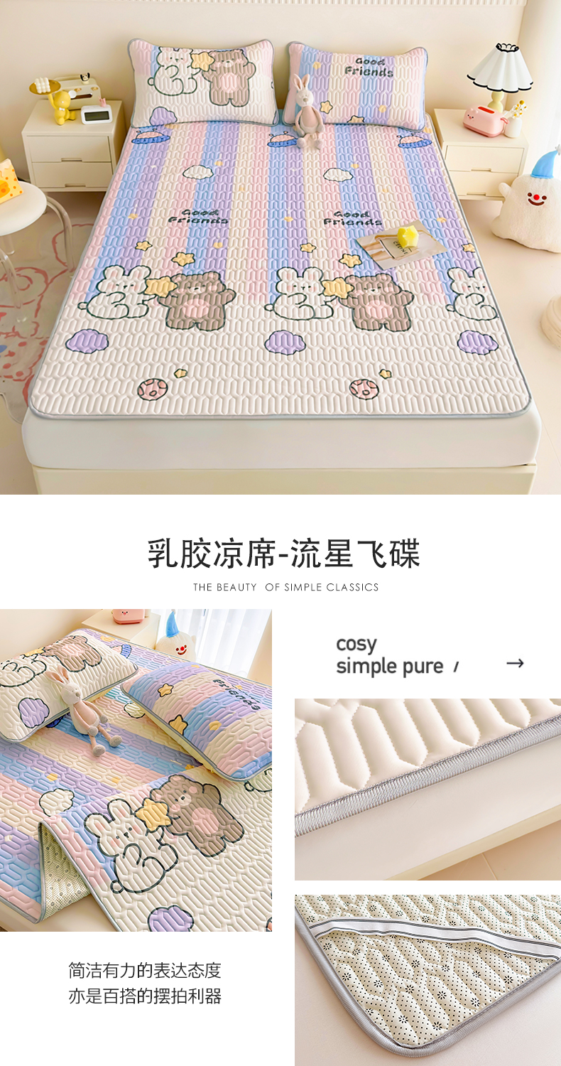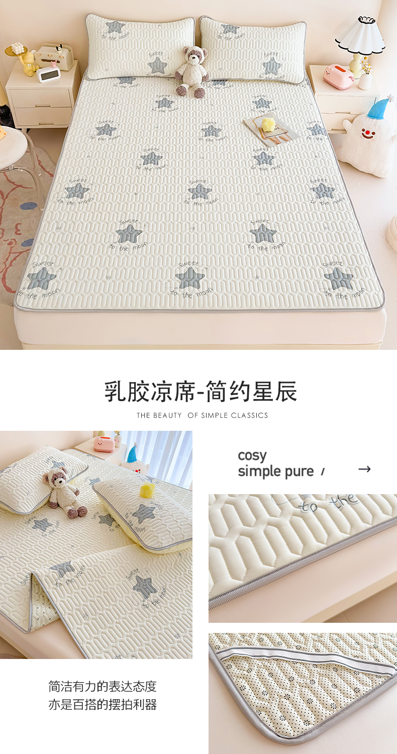 商品名称:雯豆2025夏季新品0.4乳胶凉席平铺款三件套凉感丝小清新印花席梦思床罩 乳胶凉席-香草黄