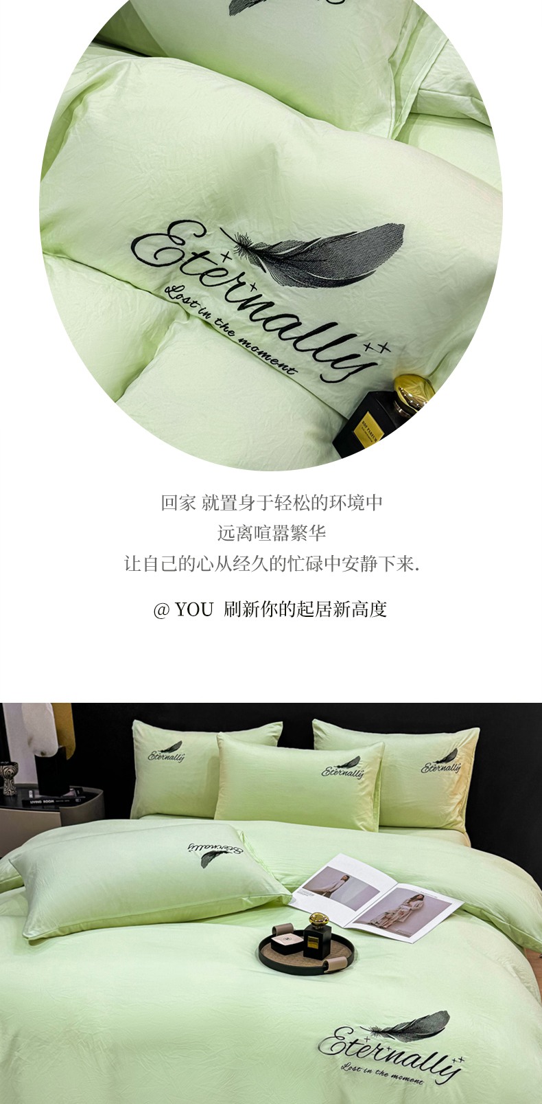 商品名称:(总)麒东家纺 2025年新款刺绣水洗棉四件套羽毛系列