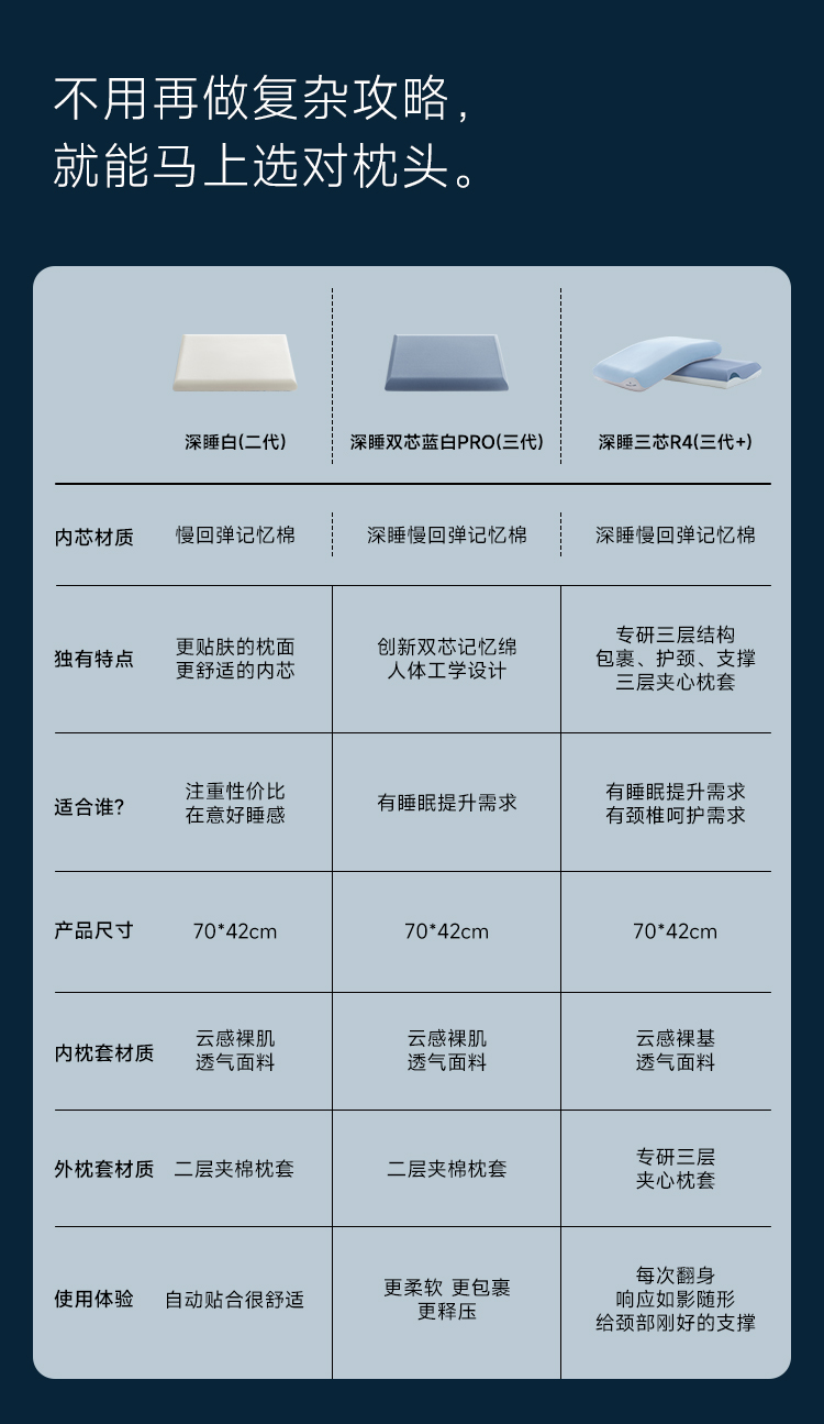 (总)可恩欣 2025新款酒店同款深睡慢回弹记忆枕 枕芯枕头 ,二代深睡枕(白)70*42*6cm,二代深睡枕(白)70*42*8cm ,二代深睡枕(白)70*42*10cm,二代深睡枕(白)70*42*12cm,三代pro双芯枕(蓝白)70*42*6cm,三代pro双芯枕(蓝白)70*42*8cm,三代pro双芯枕(蓝白)70*42*10cm,三代pro双芯枕(蓝白)70*42*12cm,二代蓝色礼盒纸箱/只,三代+深睡三芯R4 70*42*8,三代+深睡三芯R4 70*42*10,三代+深睡三芯R4 70*42*12,三代+深睡外枕套,三代+礼盒蓝纸箱/只