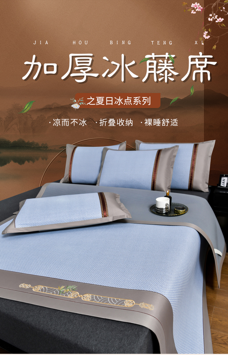 当前位置: 91家纺网 > 商品网购 > 床上用品 > 凉席 > 2025新款加厚藤席-夏日冰点系列凉席藤席冰藤席竹席冰丝席空调席草席乳胶席凉感豆豆席 加厚古藤席-夏日冰点 (浅蓝)