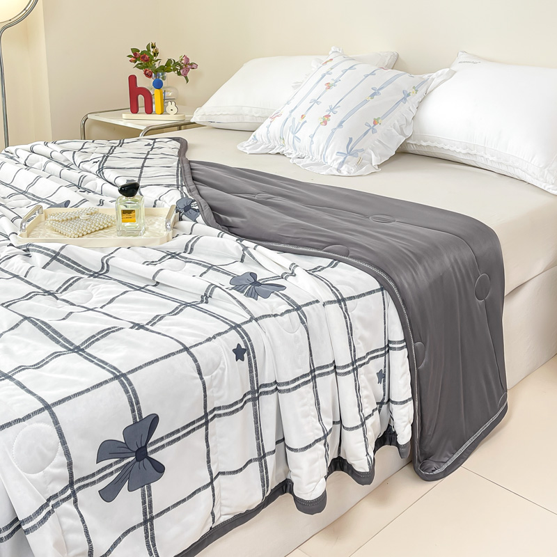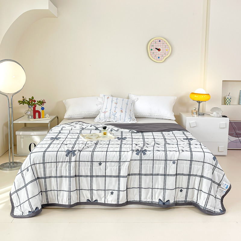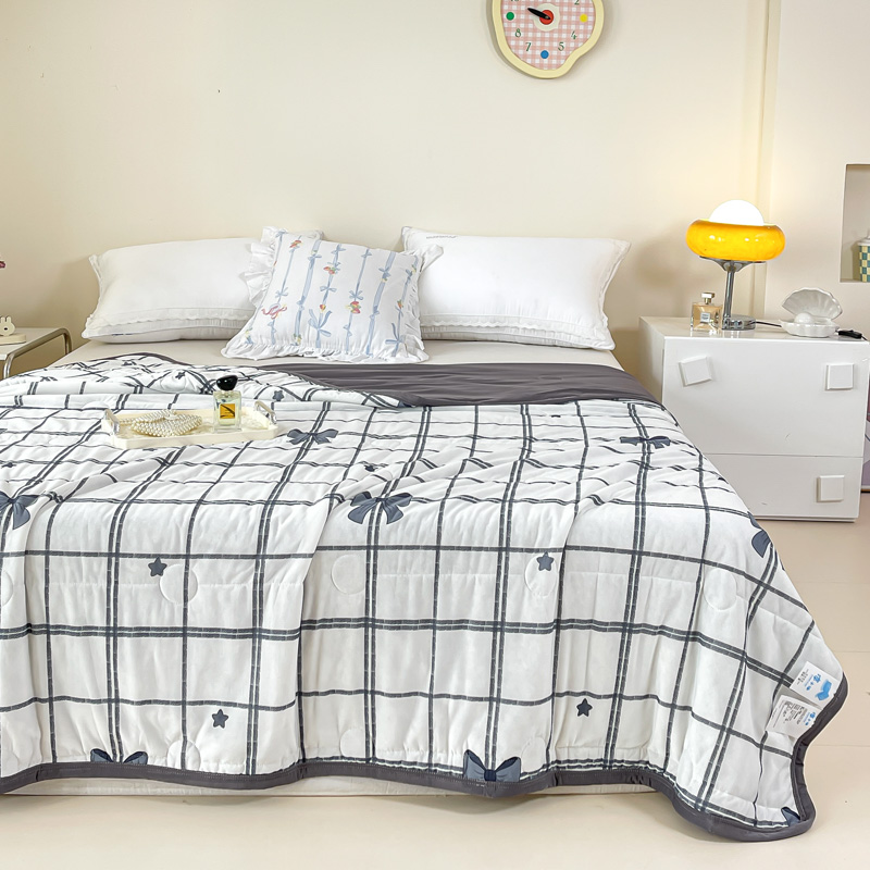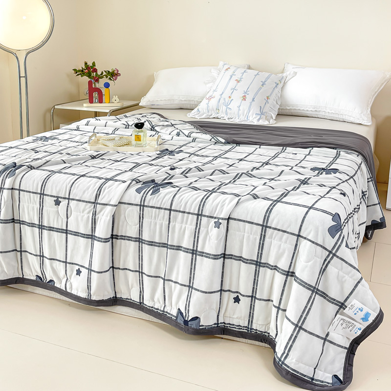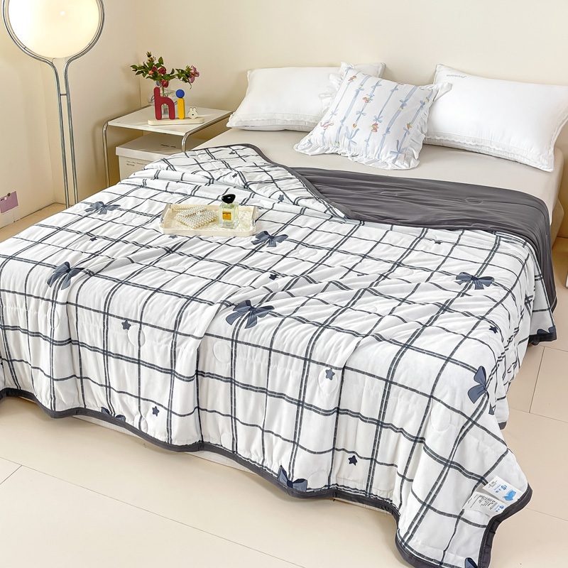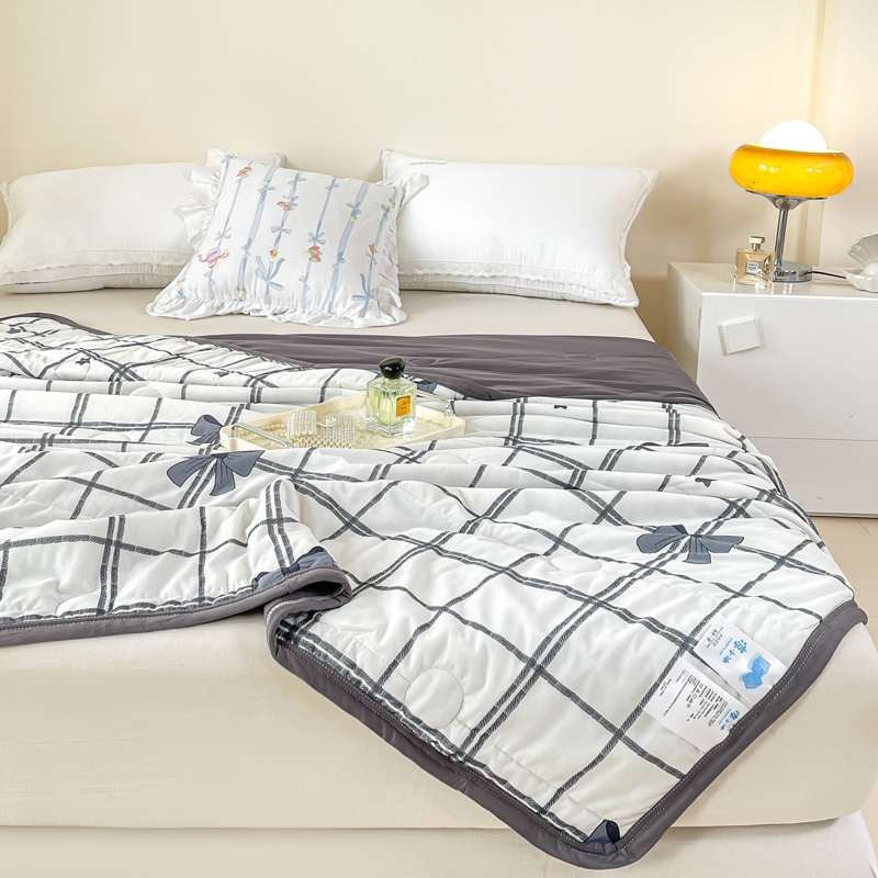 悦织湾家纺2025新款冰丝冰激凌夏被 格子蝴蝶