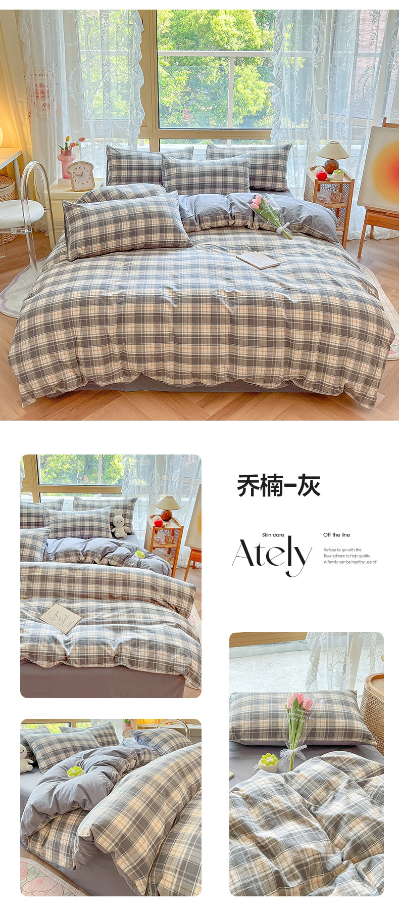 (总)卡巴伦家纺 2025新款全棉超细旦磨毛刺绣拼接四件套-旷野(会员:-20元 控价:358元),旷野-白,旷野-灰,旷野-咖,旷野-紫