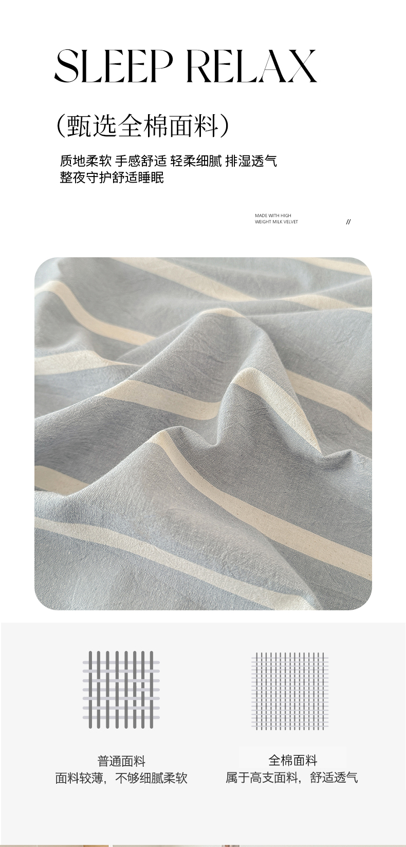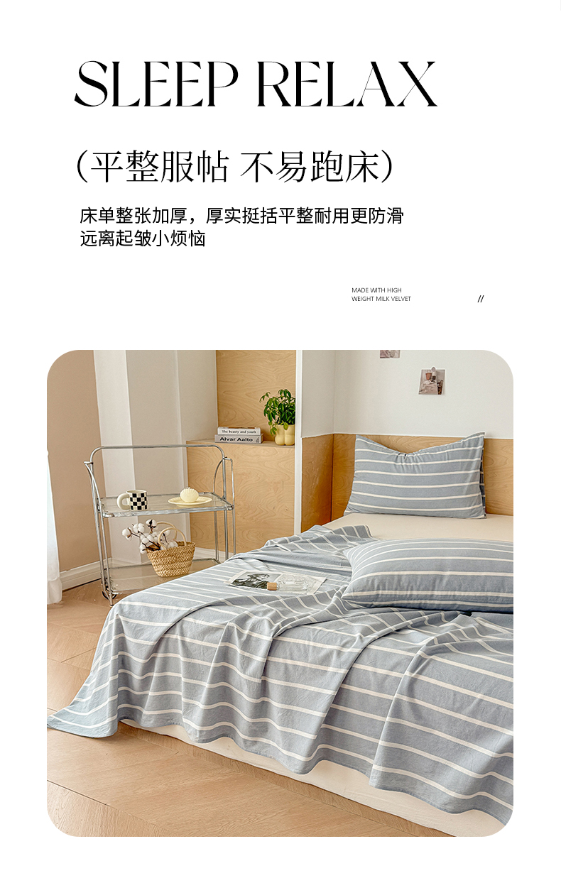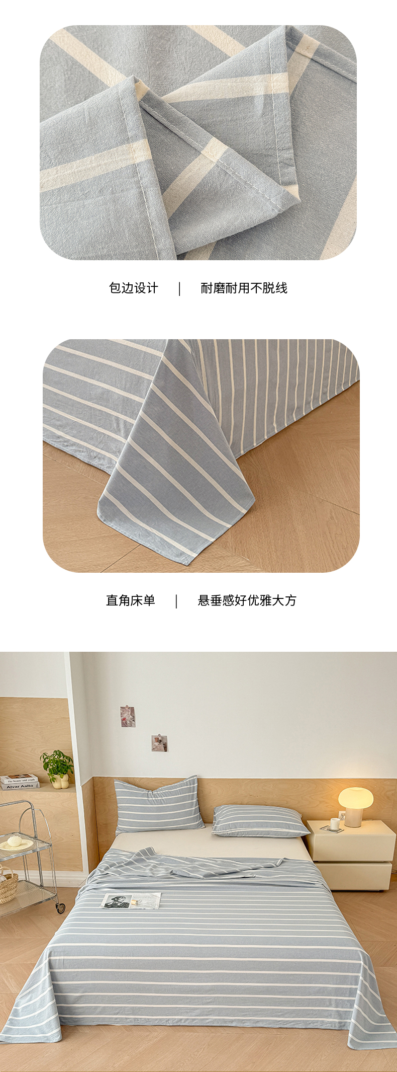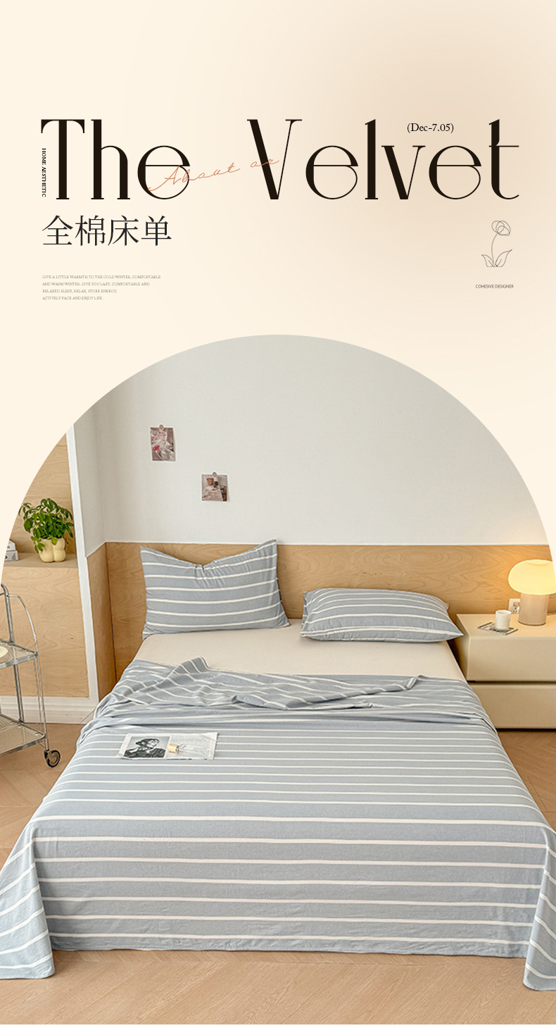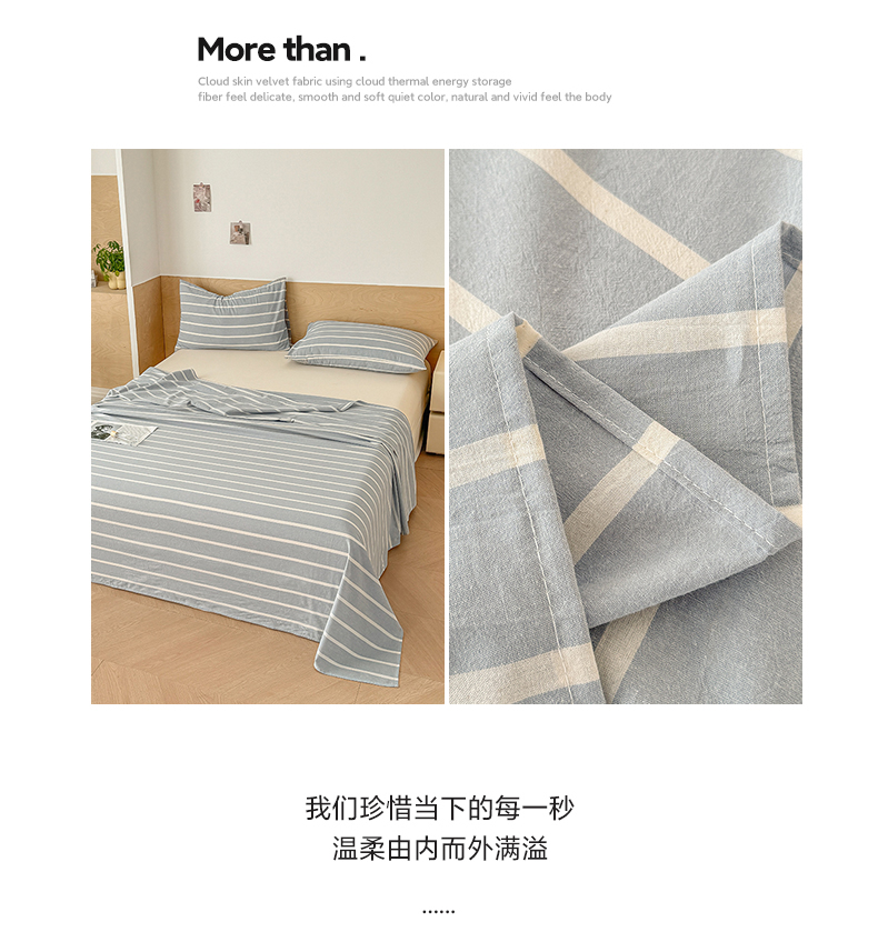 • 91家纺网 家纺一手货源 找家纺 晓时候 2025新款100%全棉色织水洗棉床单全棉床单纯棉床单 蓝条纹
