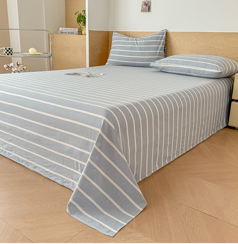晓时候 2025新款100%全棉色织水洗棉床单全棉床单纯棉床单 蓝条纹