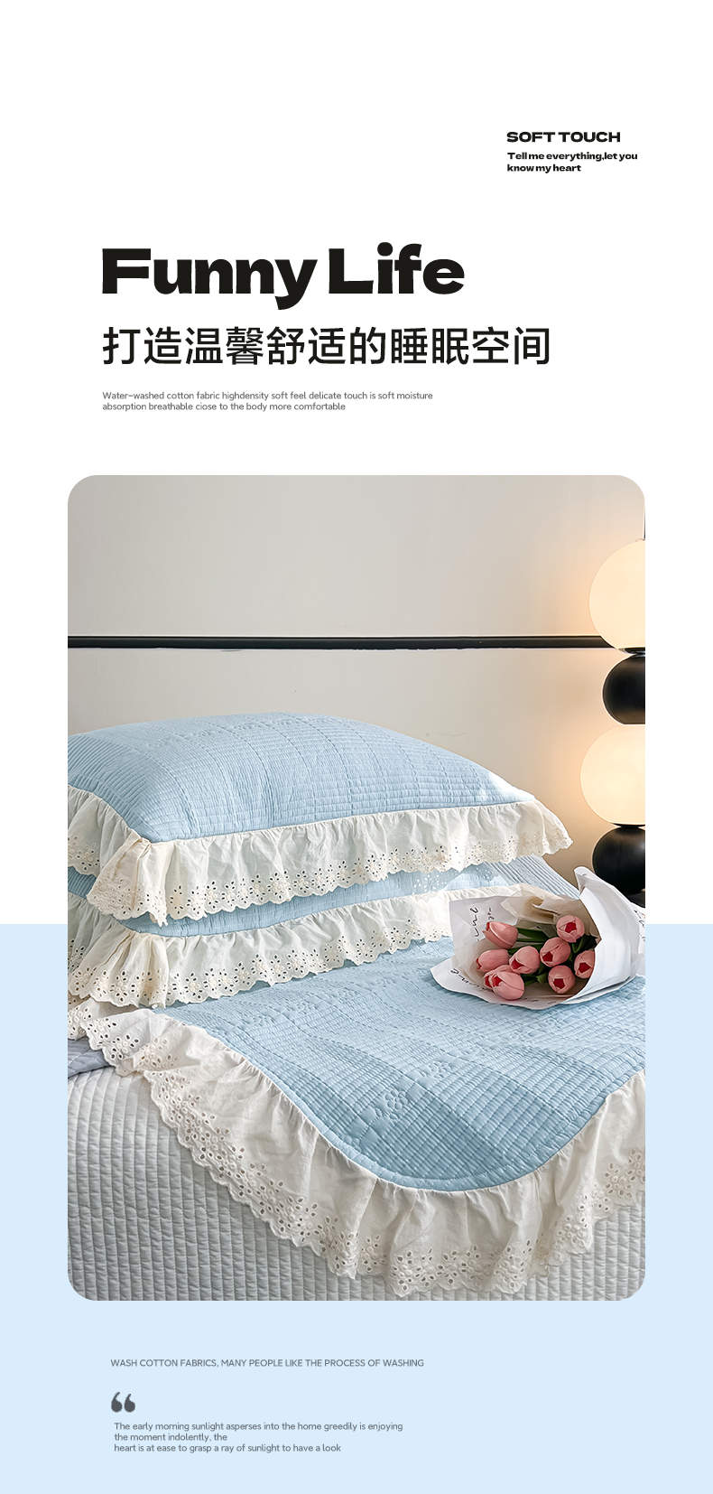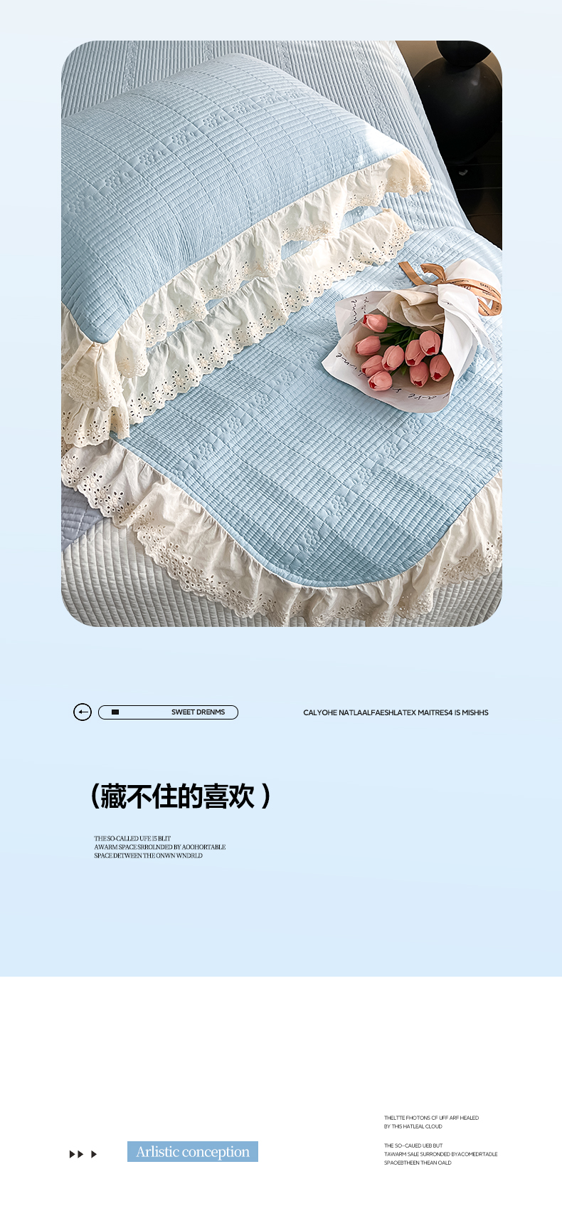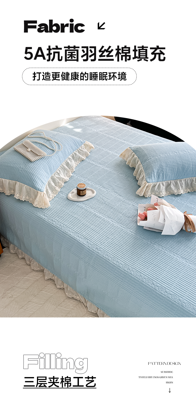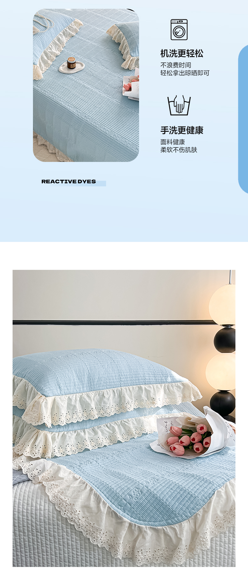 商品名称:沐纯家居 2025新款棉小乐花边床盖三件套 冰蓝
