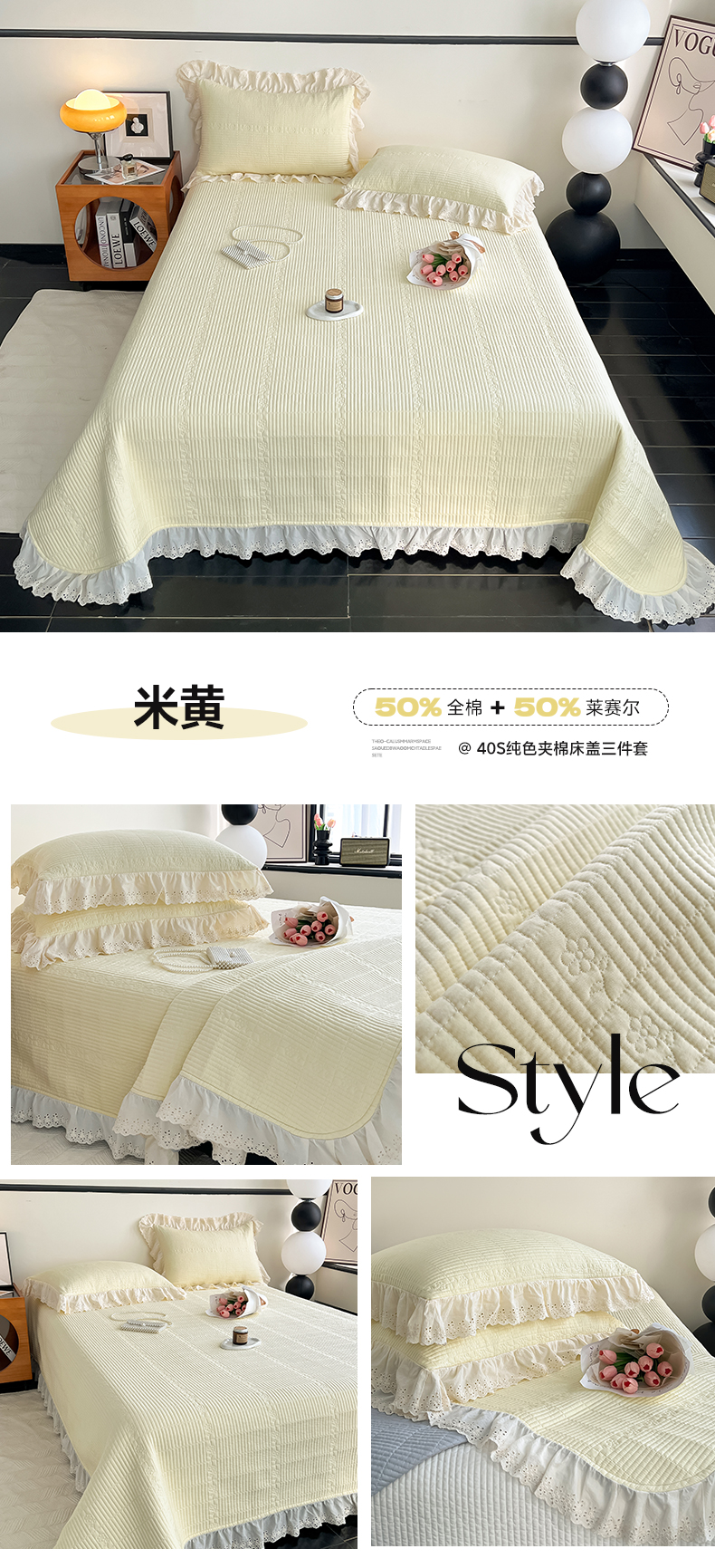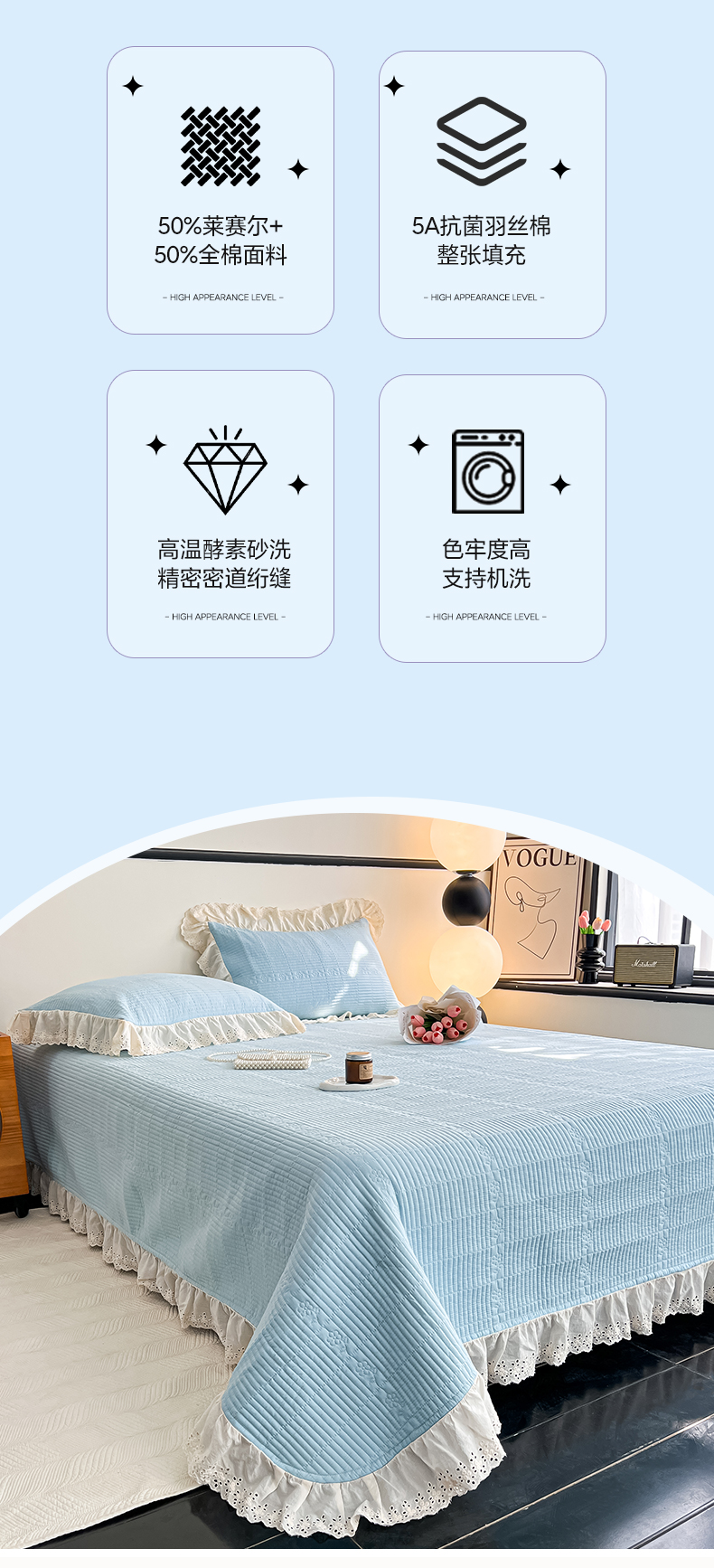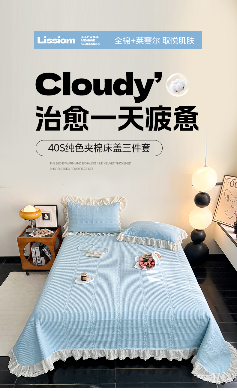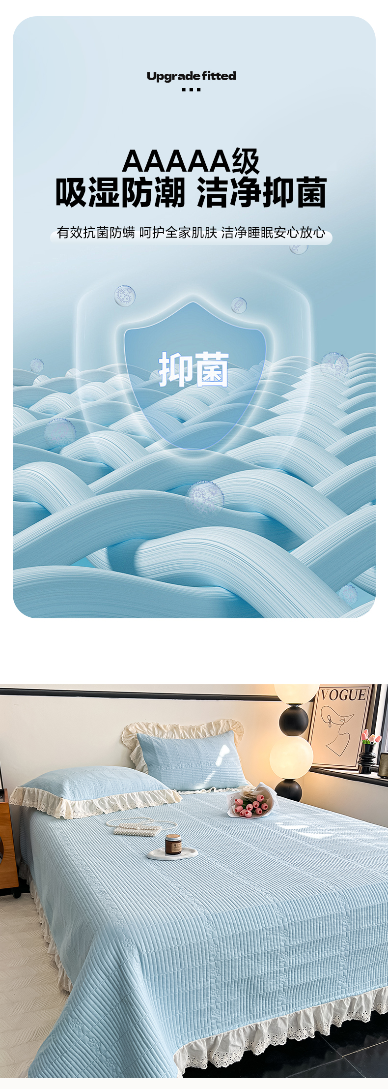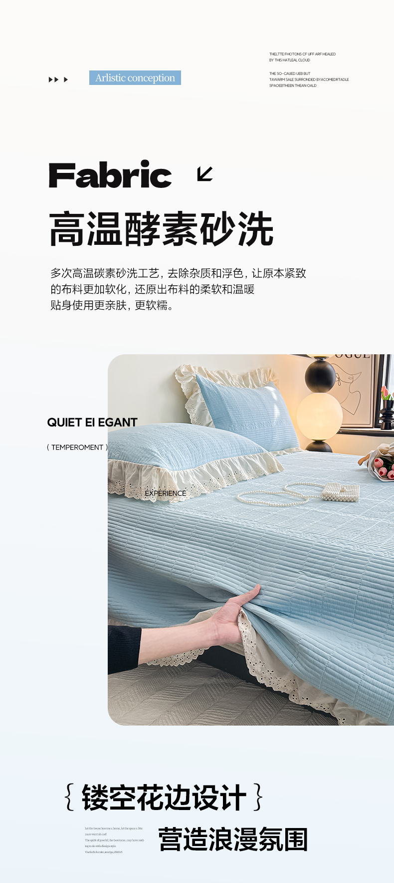 商品名称:沐纯家居 2025新款棉小乐花边床盖三件套 冰蓝