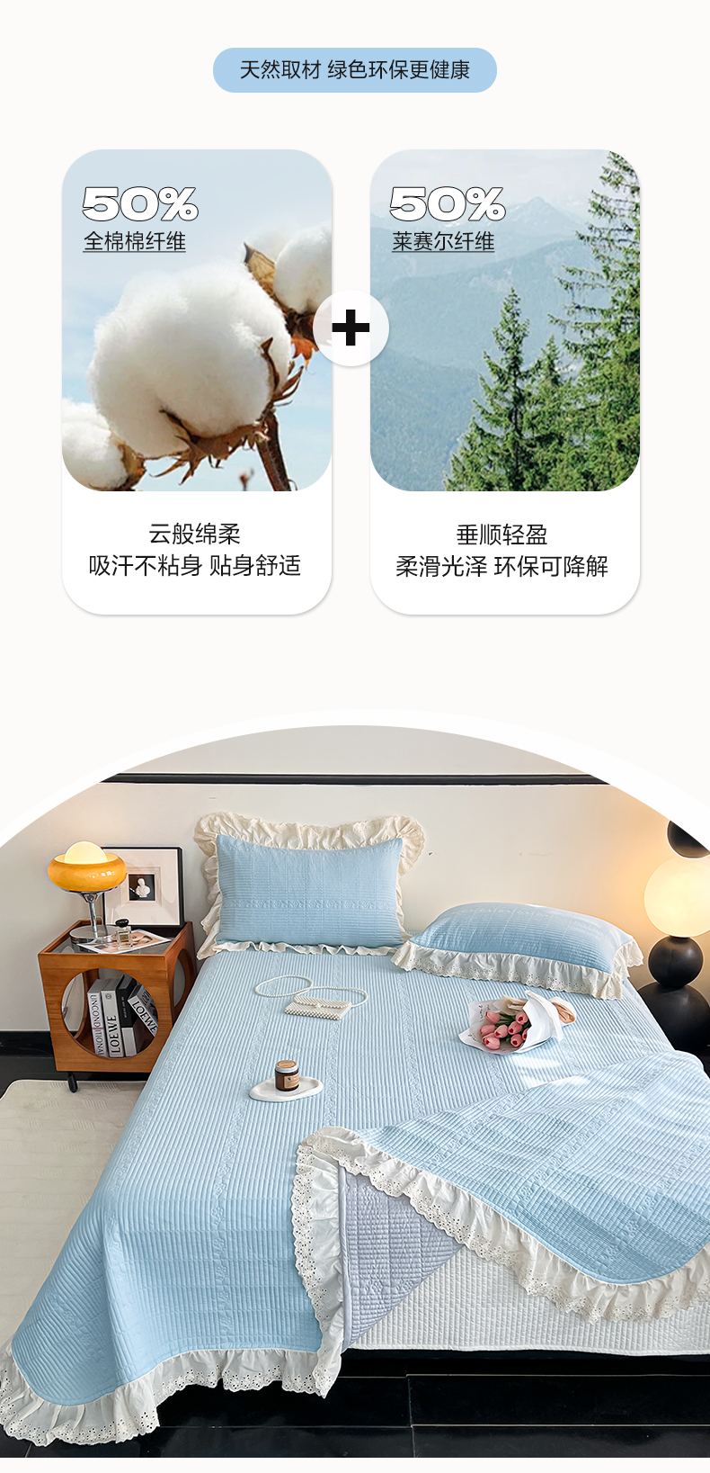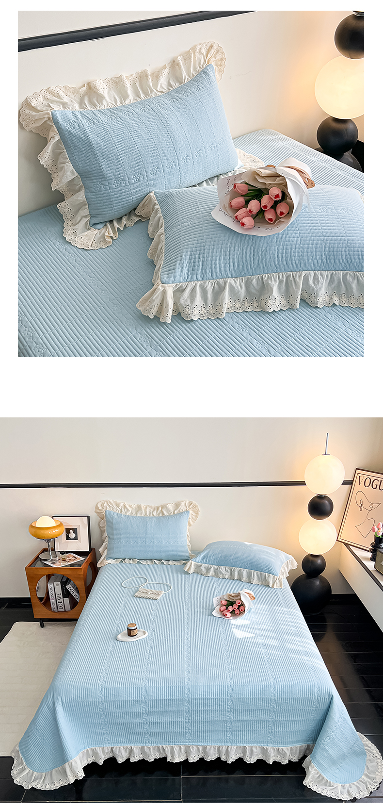 沐纯家居 2025新款棉小乐花边床盖三件套 冰蓝