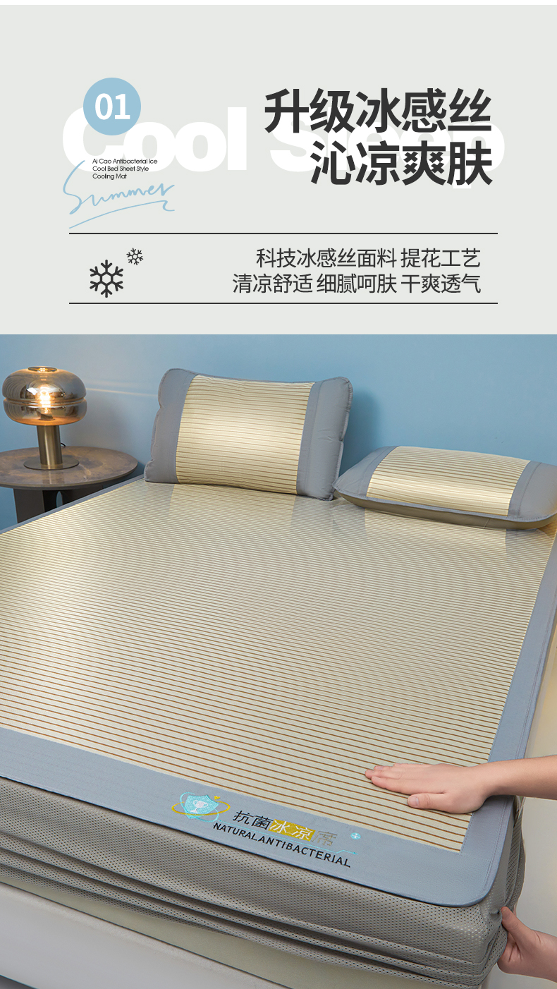 当前位置: 91家纺网 > 商品网购 > 床上用品 > 凉席 > 冰丝席 > 阿亮家居 2025新款凉席抗菌刺绣可水洗碳光冰丝席包边无纺布冰丝席 素夏 星光银-床笠款