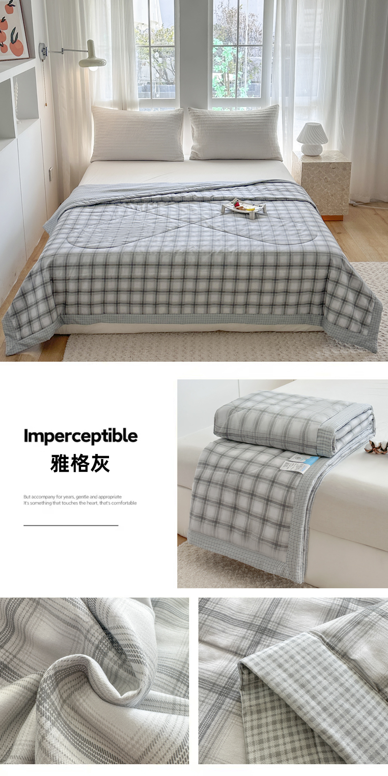 商品名称:瑜珠 2025新款A类双面全棉印花夏被夏凉被纯棉空调被 雅格灰