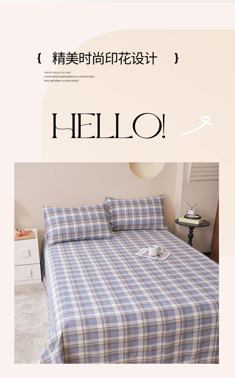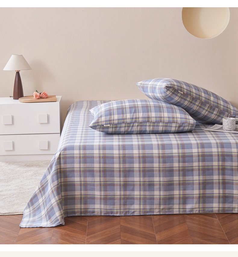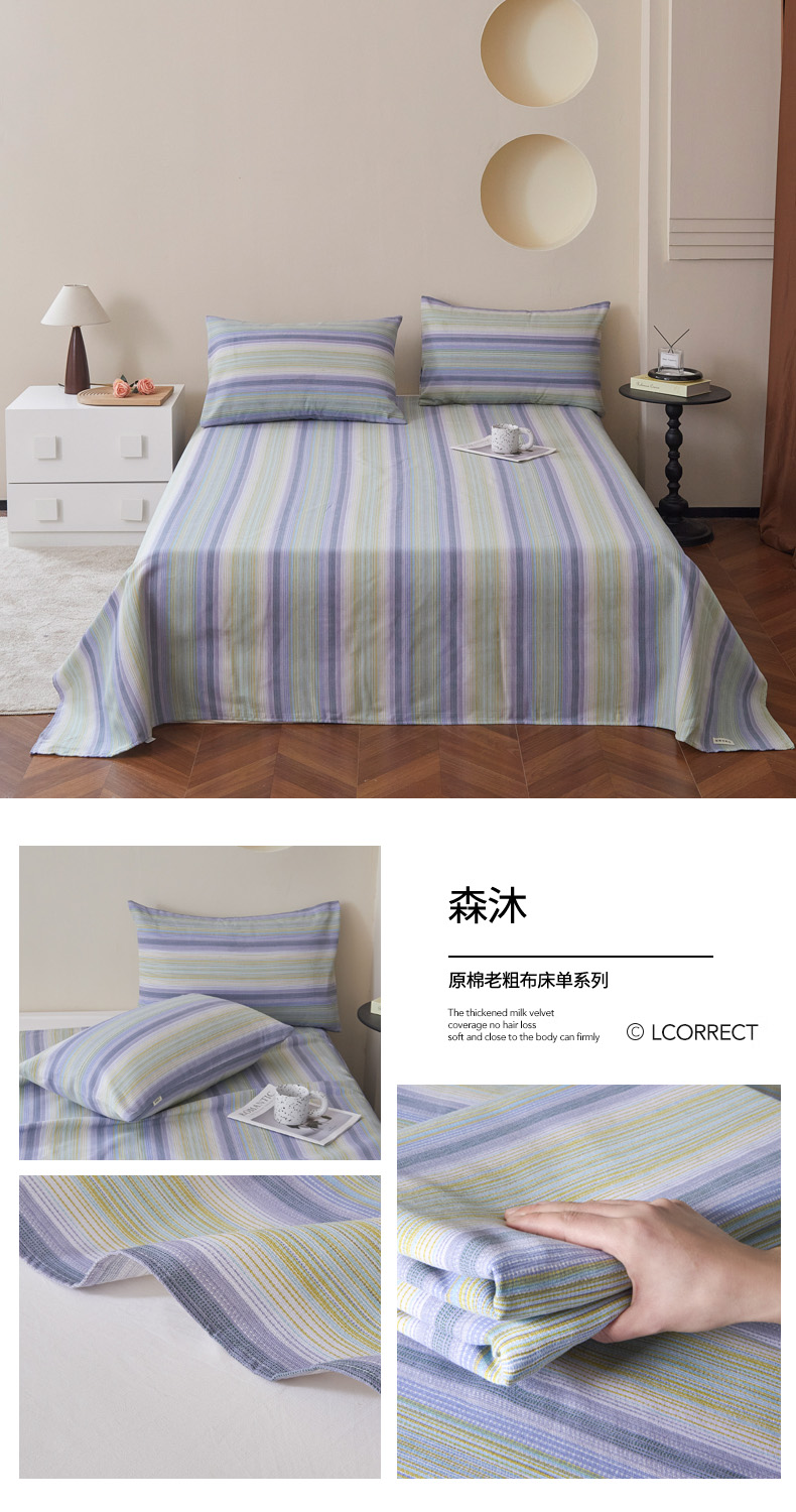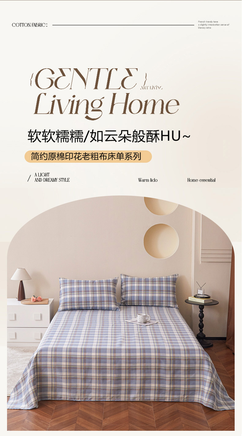 绒艺席业 2025新款简约原棉印花老粗布床单 简兮蓝