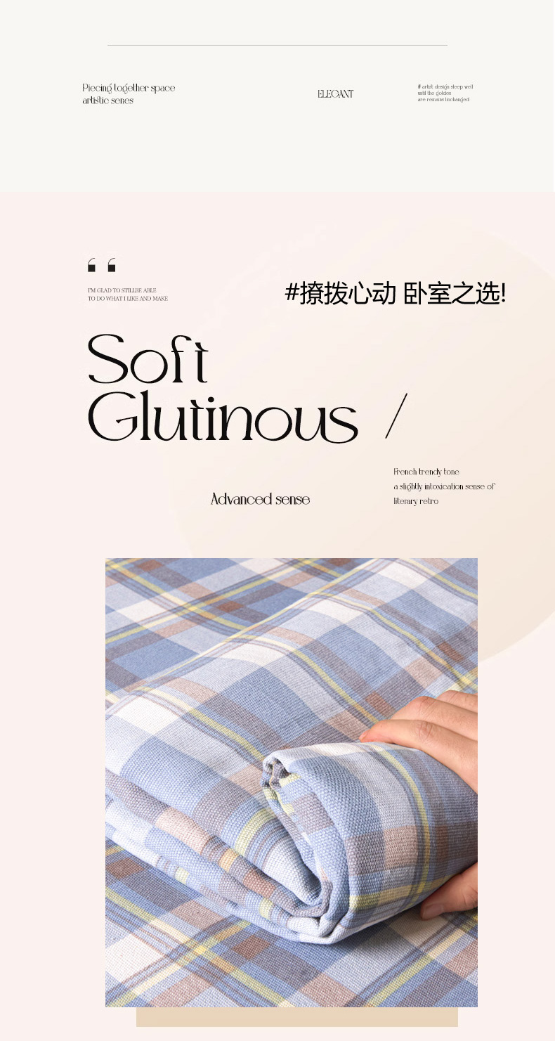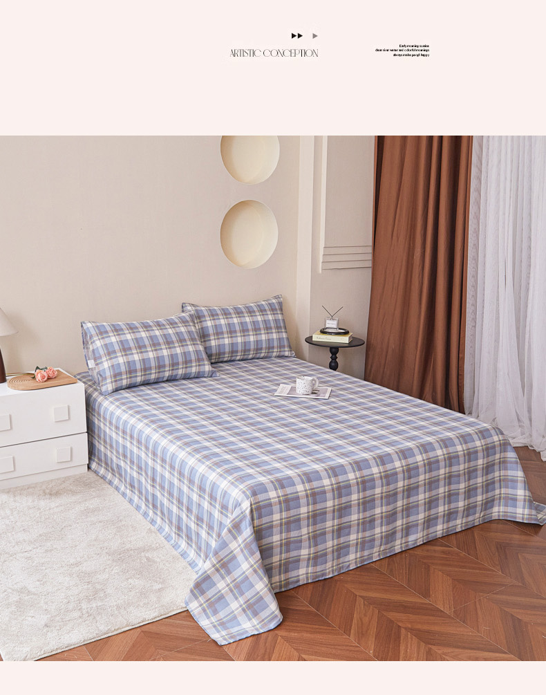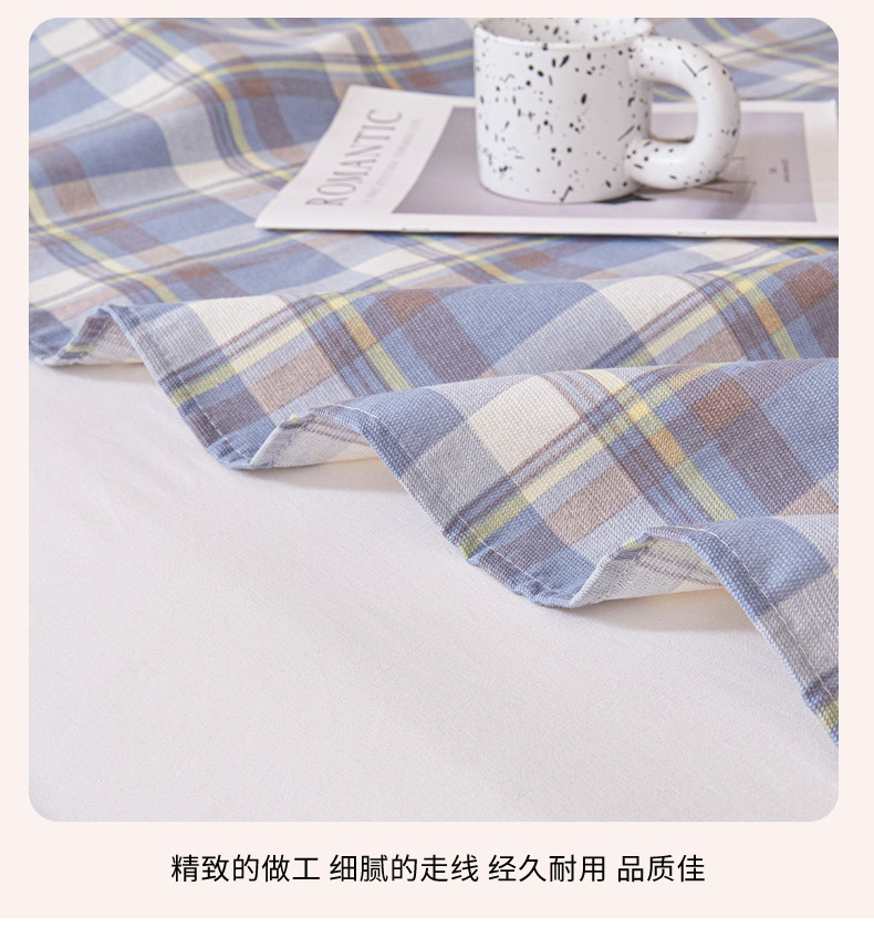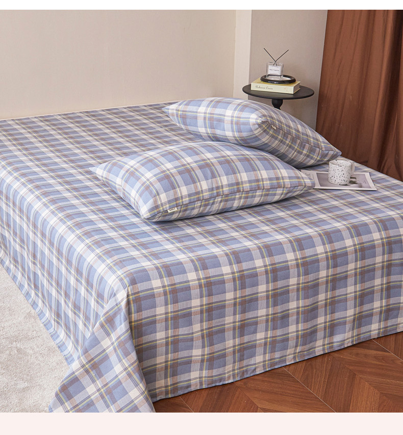 绒艺席业 2025新款简约原棉印花老粗布床单 简兮蓝