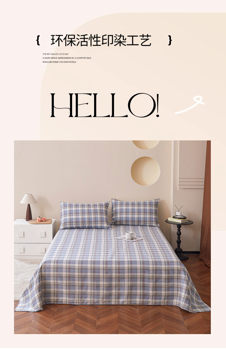 • 91家纺网 家纺一手货源 找家纺 绒艺席业 2025新款简约原棉印花老粗布床单 简兮蓝
